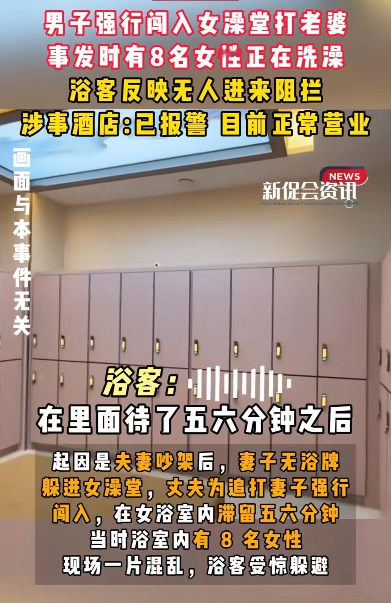 女澡堂被闯, 隐私全无, 到底谁来负责。 1月28号快到半夜那会儿,周口鹿邑县四季和园洗浴中心的女浴室,突然冲进来一个男的。 当时里头正有八位女士在洗澡,谁也没想到他会直接闯进去打自己老婆。 他进去后闹了五六分钟,没人拦住,工作人员说被他推倒了,可监控和视频里根本没看到有人第一时间报警或拉警报。 警方第二天就把他行政拘留了,洗浴中心也停业整顿,老板被要求道歉。 但事后只拿20张澡票当赔偿,对那几位被吓到、羞辱到的女士来说,真的太轻了。 这不是小事,是女澡堂这种地方最基本的防线崩了。 法律上说,这不光是家暴,更是对一群陌生人隐私的公然侵犯。 洗浴中心有责任守住门,不是等出了事再补救。 现在人还在拘留,澡堂关着门,监控存着,笔录也做了。 事情就摆在这儿。