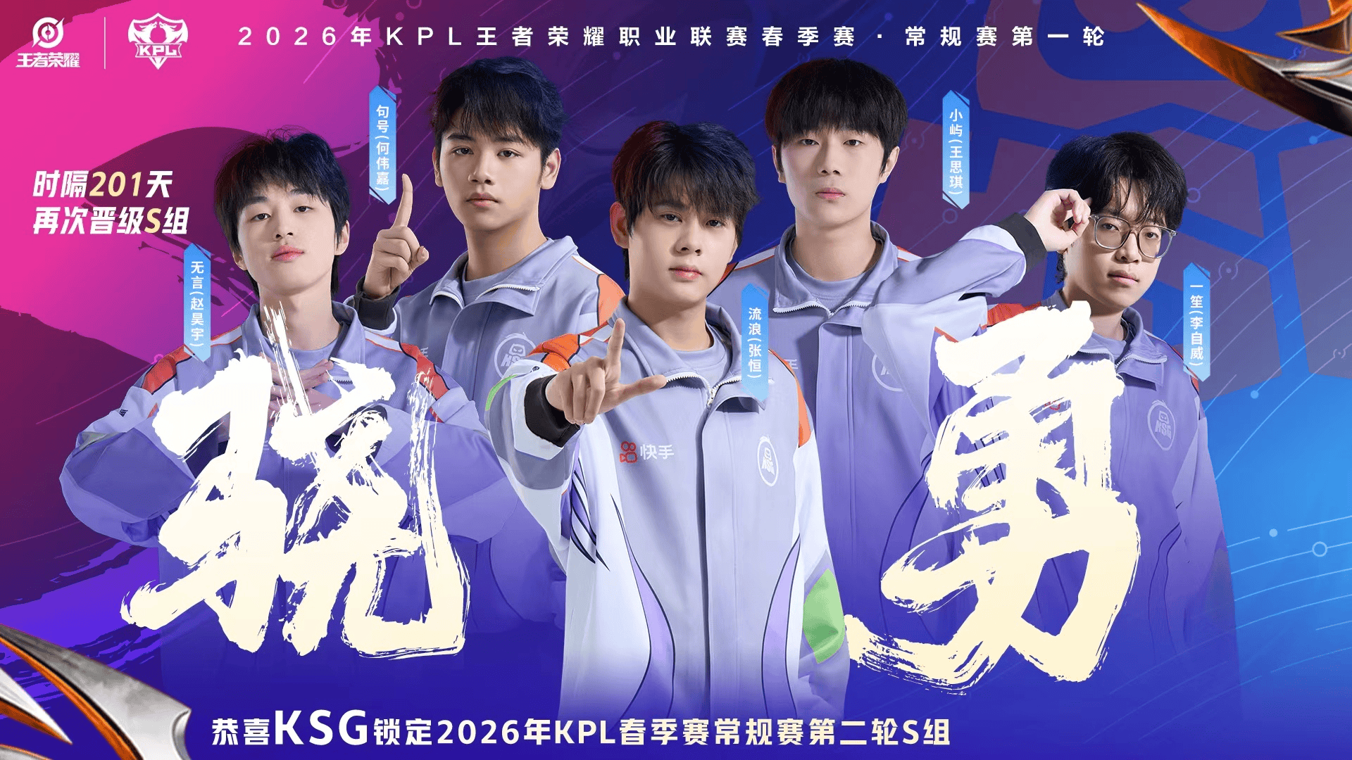 虎扑01月31日讯恭喜KSG锁定2026KPL春季赛常规赛第二轮S组!