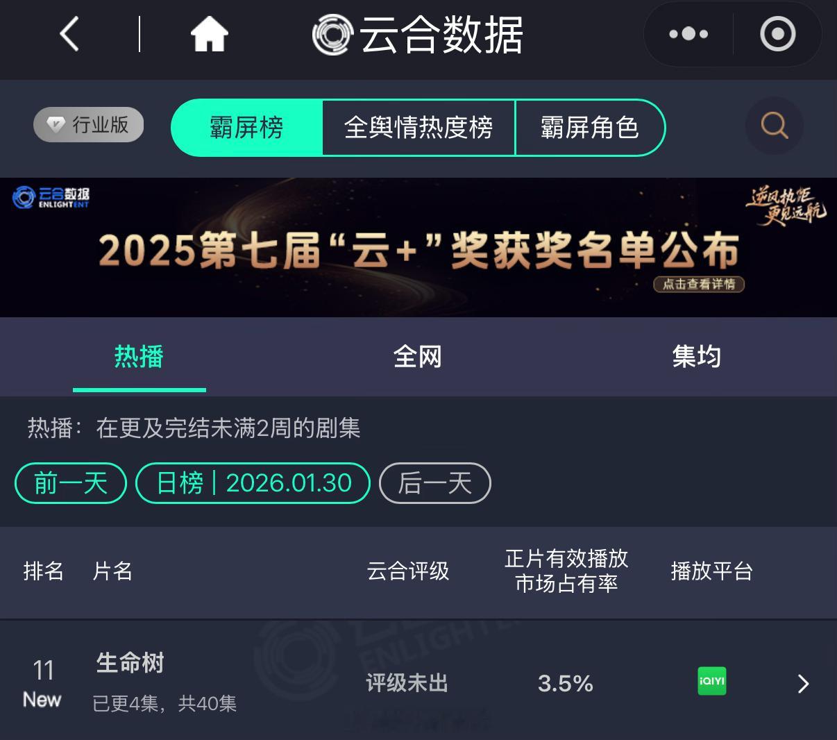 杨紫新剧生命树云合首日正片有效播放市场占有率3.5%!目前生命树豆瓣短评已恢复了!加油!生命树好剧值得细看生命树收视率第二集就断崖跌