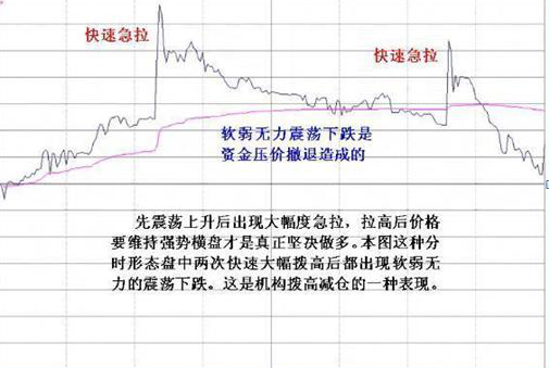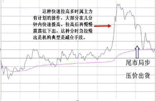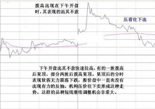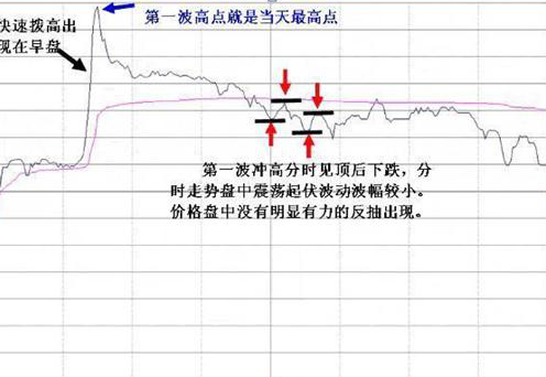 通常的个股走势,都是跟随大盘而动,但有的个股,走势完全不受大盘任何左右,开盘即直奔高点而去,当到达某一可观高度后,也不管大盘走势,直接滑落,这种分时走势,不是庄家拉高出货,就是庄家大幅振荡洗筹。