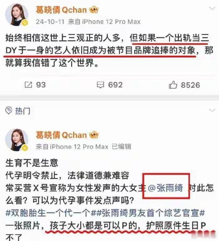 张雨绮解约的品牌排到了法国知3️⃣当3️⃣还有代yun行为,俩孩子出生日期仅隔三月,而张雨绮团队这边只敢只删评论,春晚也被退货了,基本实锤