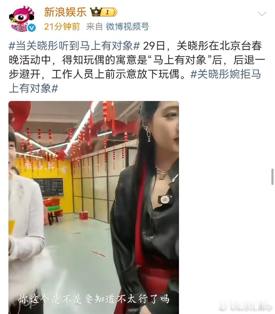 关晓彤,着实让人心生怜惜!1 月 29 日,在北京春晚的舞台上,关晓彤一个下意识的动作,将她内心的无奈与谨慎暴露无遗,令人心疼不已。在北京台春晚活动里,当得知手中玩偶寓意着 “马上有对象” 时,她下意识地往后退了一步,躲开了这个玩偶。工作人员赶忙上前将玩偶接走。这看似不起眼的一幕,实则暗藏着她在感情方面的小心翼翼与无奈。28 岁的关晓彤,早已过了被催恋的阶段,然而在感情话题上却一直小心翼翼。她和鹿晗长达八年的恋情曾在内娱引起轩然大波,可到了 2025 年底,却传出了分手的消息。生日时双方互不祝福、共同持股的公司解散,她父亲点赞分手传闻后又迅速撤回,这些细节让他们的感情变得扑朔迷离。而她自始至终都没有正面回应,独自承受着外界的种种猜测。不久前她公开表示 “感情不是必选,自由才是刚需”,这也让我们更能理解她对待感情的谨慎态度。作为一位实力派演员,她手握六部待播剧,还有三部央视正剧在身,正处于事业的关键冲刺阶段。她拒绝了超 2.3 亿元的综艺邀约,一心专注于拍戏,显然不想让感情话题分散大家对她作品的关注。明星的感情本就处于聚光灯下,稍有风吹草动就会被无限放大。年初的恋爱谣言让她不得不发声明起诉造谣者,这样的舆论压力,换做任何人都会变得谨慎起来。她的后退并非是抗拒爱情,而是经历过现实的磨砺。公众对她感情状态过度关注,事业上升期又需要全身心投入,还要面对过去感情留下的纷纷议论,关晓彤的谨慎不过是一种自我保护。明星的感情生活就像在风口浪尖上行走,稍有不慎就会引发舆论的狂风暴雨。关晓彤深知这一点,所以她才会如此小心翼翼。对于她来说,感情不再是一场简单的恋爱,而是一场需要权衡利弊的选择。在当下这个流量逐渐退去、作品才是王道的时代,关晓彤明白只有靠实力才能站稳脚跟。她不想因为感情问题而影响自己的事业发展,所以选择慢慢来。她这种在喧嚣中坚守本心的克制,实在是难能可贵。她没有被外界的声音所左右,没有为了迎合大众而随意表态。她清楚自己的目标,也明白自己想要的是什么。在事业的道路上,她一步一个脚印,努力提升自己的演技,用作品说话。关晓彤的故事让我们看到了一个明星在面对感情和事业时的无奈与坚持。她的谨慎不是懦弱,而是一种成熟和智慧。在这个快节奏的时代里,她懂得停下来思考,懂得为自己的未来负责。相信在未来的日子里,她能够在事业上取得更大的成就,也能找到属于自己的幸福。