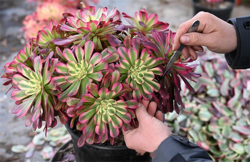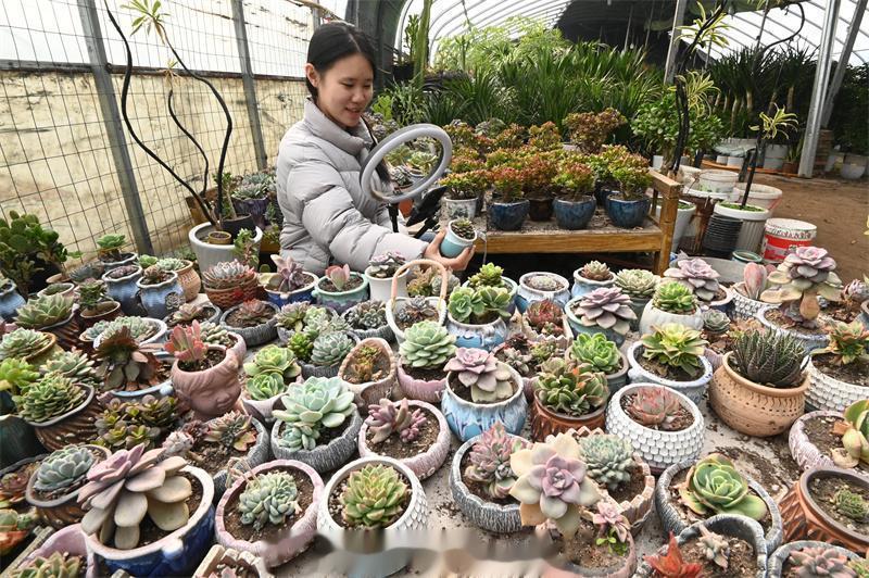 临近春节,峰峰矿区彭城镇河泉村的多肉花卉绿植大棚里热闹非凡。棚内多肉萌趣可爱、绿植绿意盎然,工人们抢抓节前商机加紧备货。这些特色绿植既丰富了春节年宵花市场,也为村民拓宽了增收渠道。邯郸新闻传媒中心记者郝群英摄