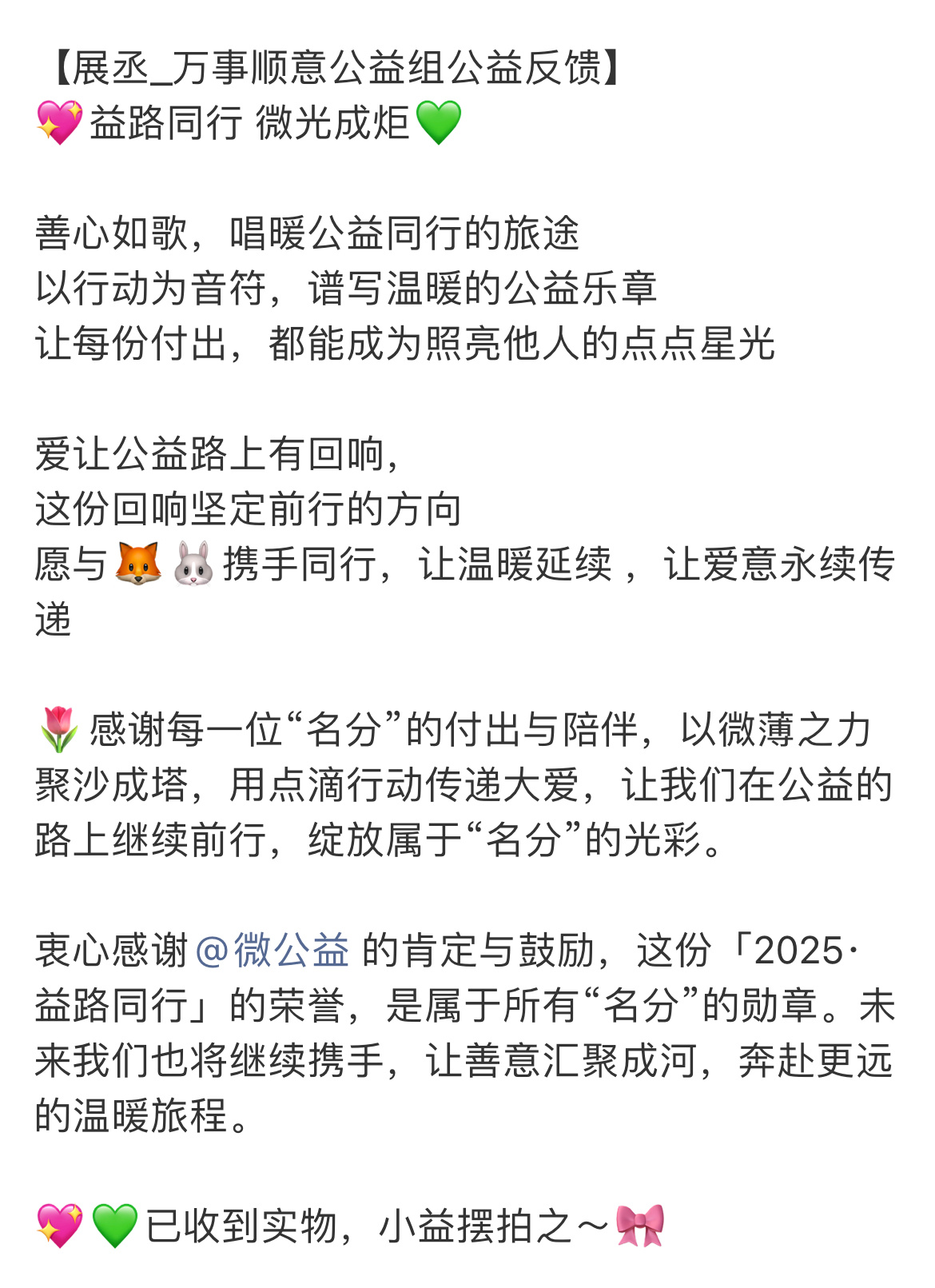 展丞粉丝公益得到官方肯定鼓励,并颁发荣誉证书