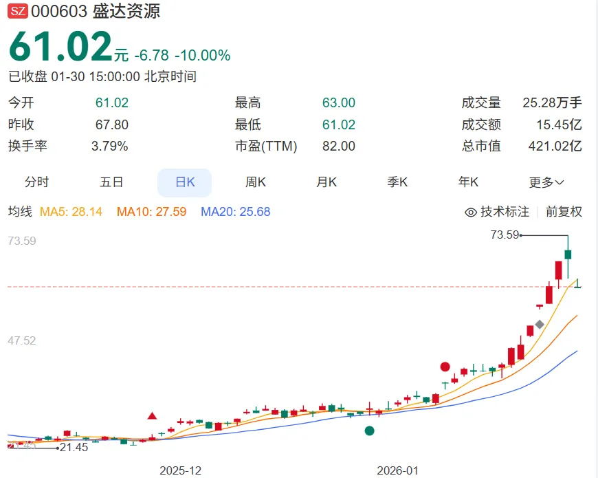 水涨船高,其股价坐上火箭,2025年初至今,涨了4倍,截至1月30日收盘,达到61元/股。