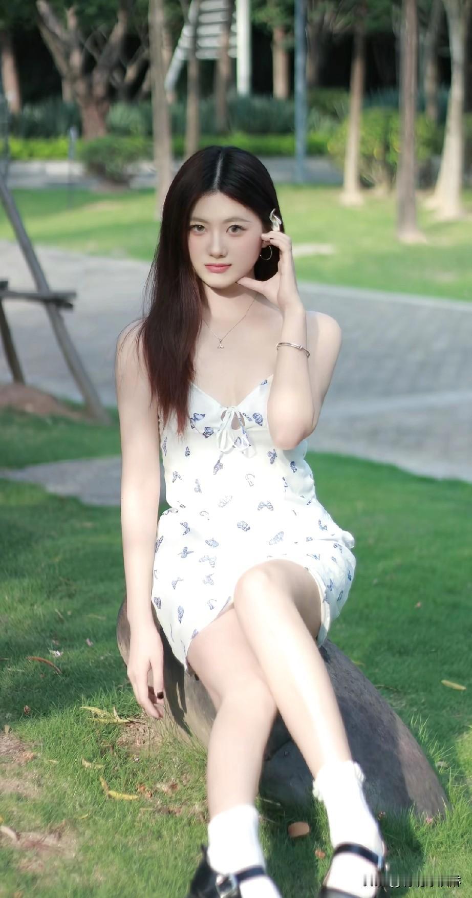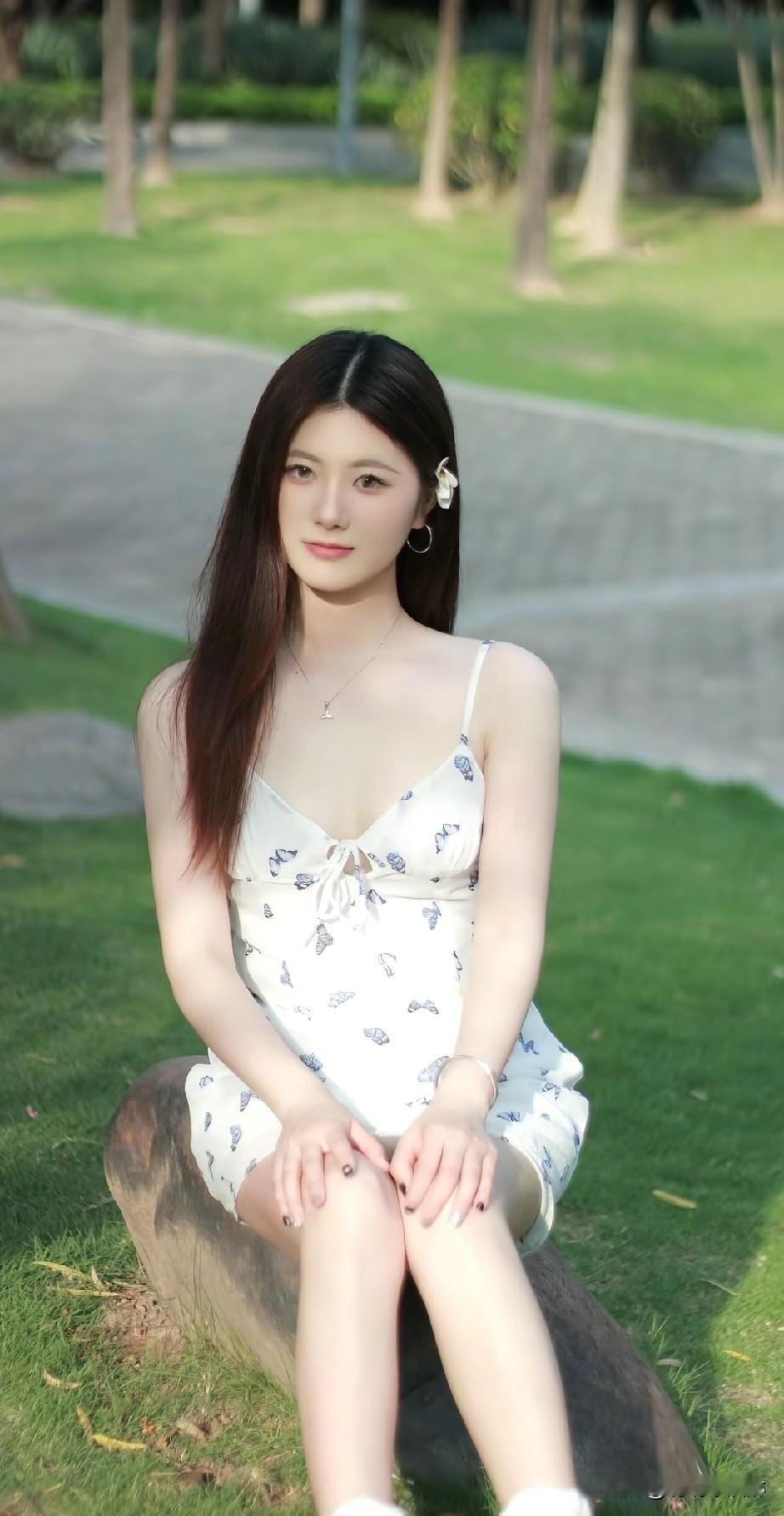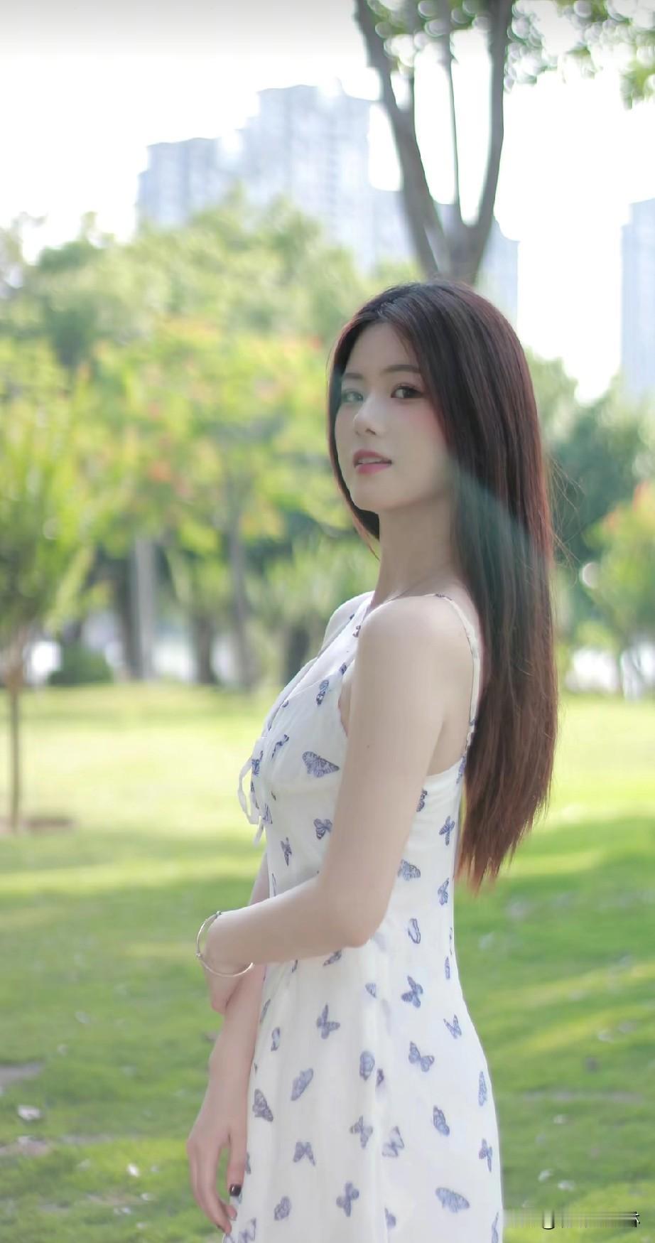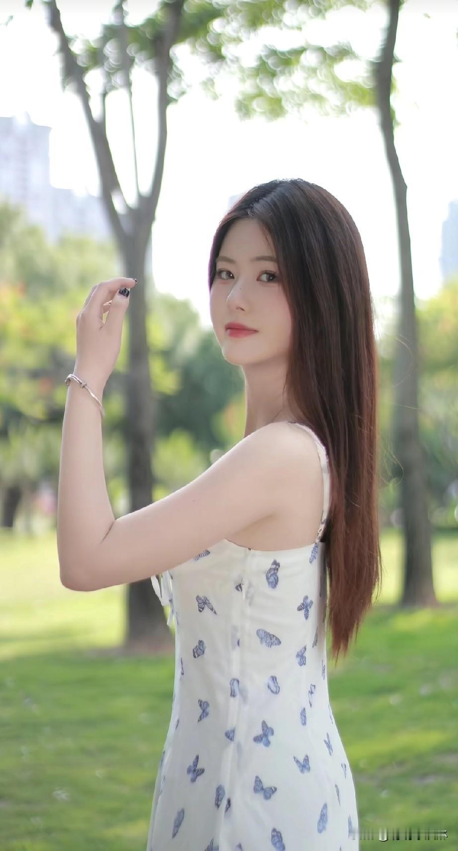 夏日清新少女,绿意盎然背景,甜美笑容绽放