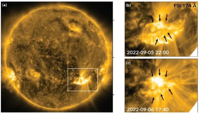 2018年-2022年间,“帕克”探测器多次近距离飞掠太阳。在一次飞掠中,“帕克”记录到磁场强度突然下降了70%,这是人类首次直接观测到磁力线断裂的信号。也就是眨眼之间,等离子体分析仪显示温度从约30万摄氏度飙升至120万摄氏度,证实了磁能快速转化为了热能;而粒子探测器则捕捉到速度超过1000公里/秒的高能粒子流,完美验证了磁重联理论对粒子喷射速度的预期。美国科罗拉多州西南研究院的团队花费近三年时间,对这些数据进行了细致分析和重构,最终梳理出磁重联发生的完整链条。