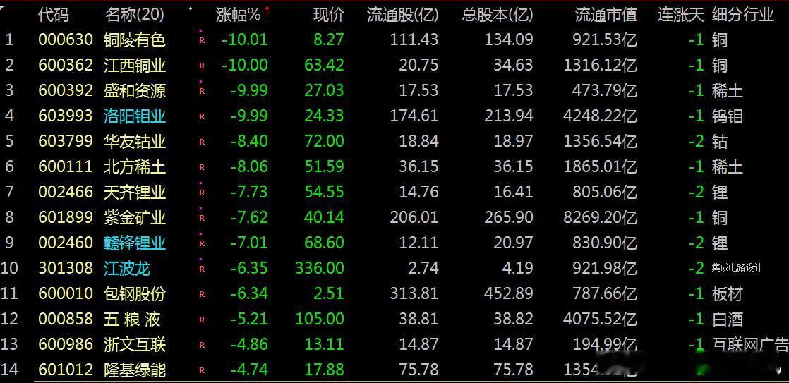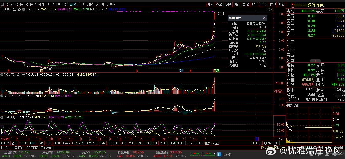 观铜龙头:云南铜业:铜陵有色:两者异想天开高价。因高溢价:收购凉山矿业(评估增值率超320%)引发减值担忧,叠加铜价波动、冶炼加工费进入负值区间,叠加技术面回调与筹码分散,触发集中抛售,无直接政策刺激。