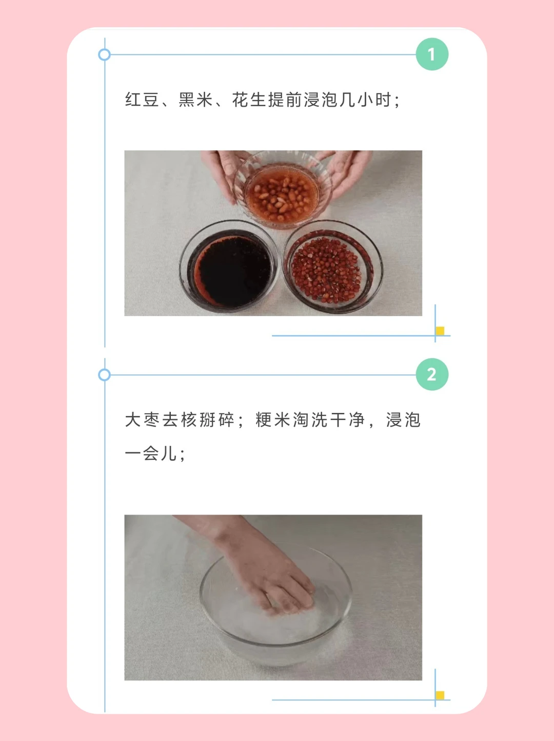 1.红豆、黑米、花生提前浸泡几小时;