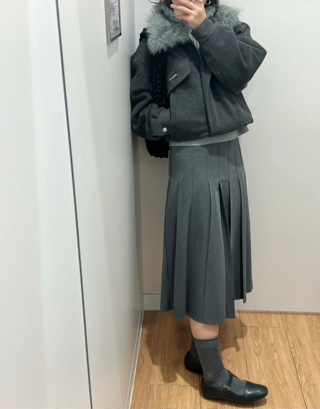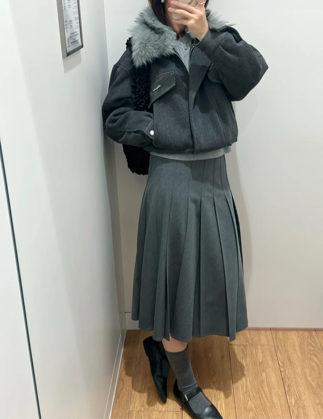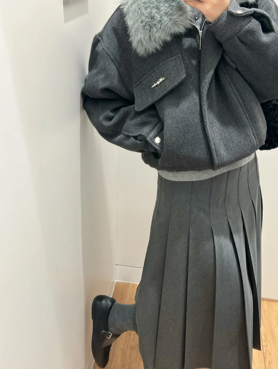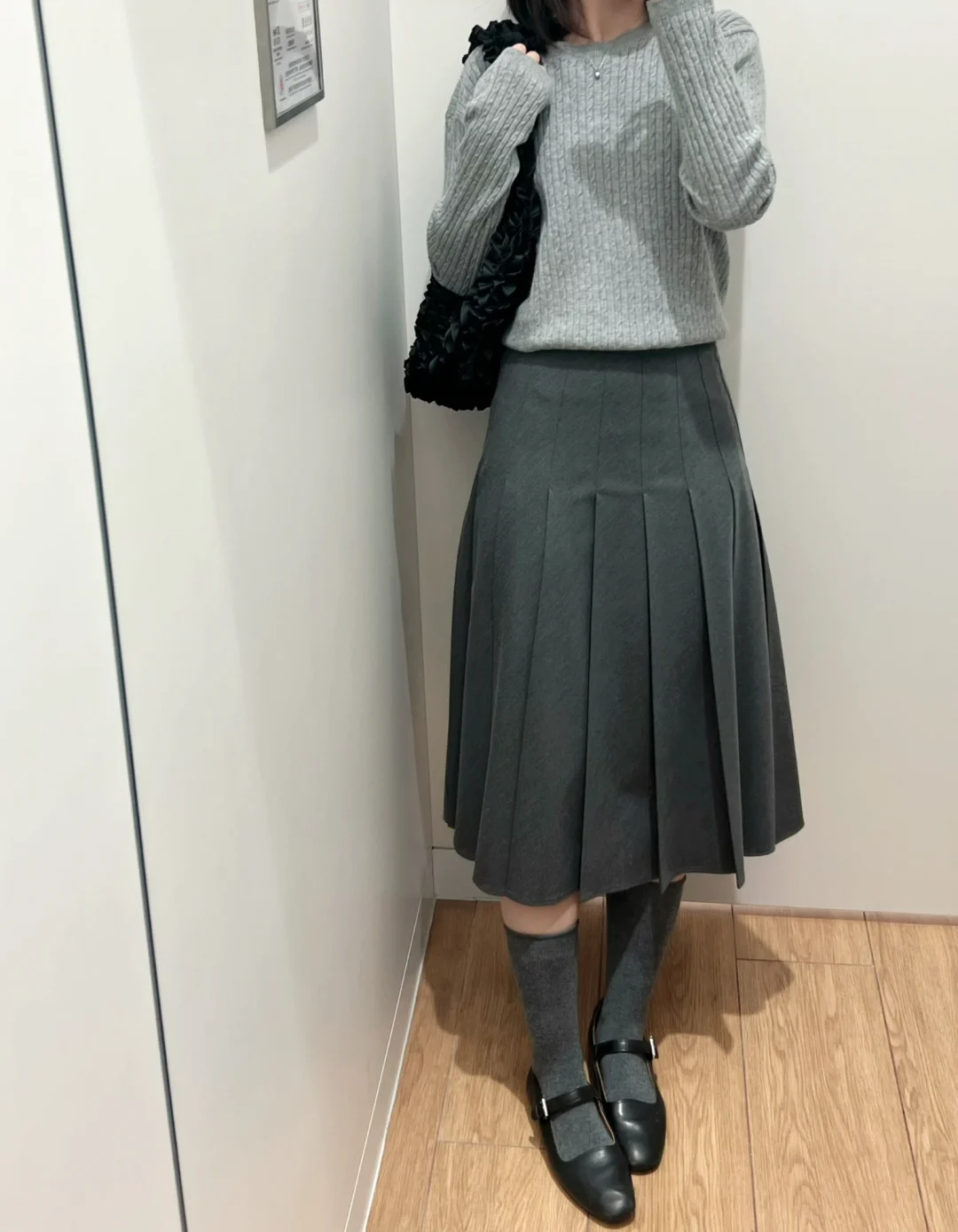 一套灰灰好气质耐看~ 百褶裙看着一般 上身却很惊艳~ 秋冬季节的好搭配单品👍