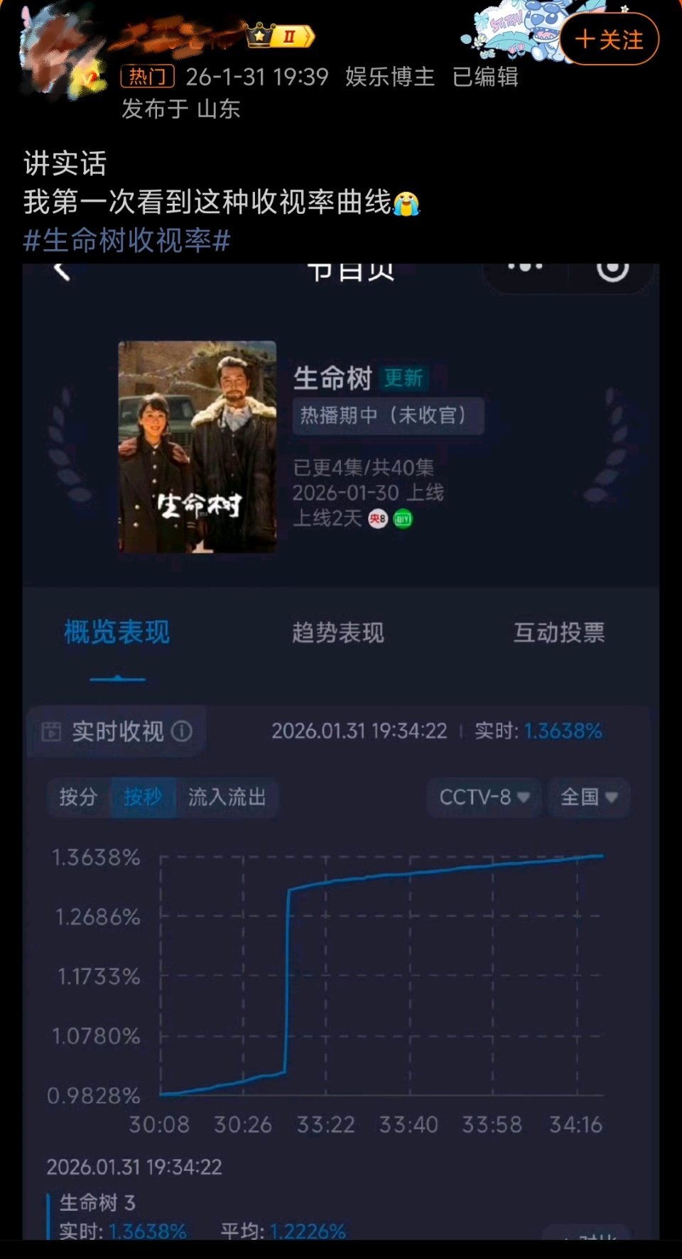 生命树收视率这是无脑黑吧?我去看了,收视率走势很正常啊,用一小节图替代整个走势图