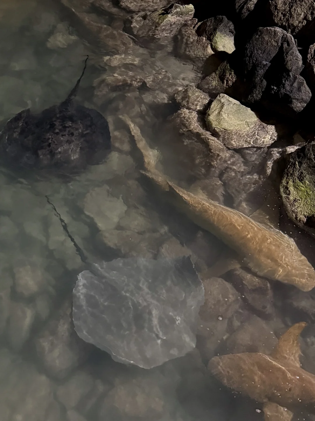 1️⃣面朝码头 右侧防浪堤 下水就有尼莫 往喂鱼点游 鹰鳐礁鲨海龟随便看