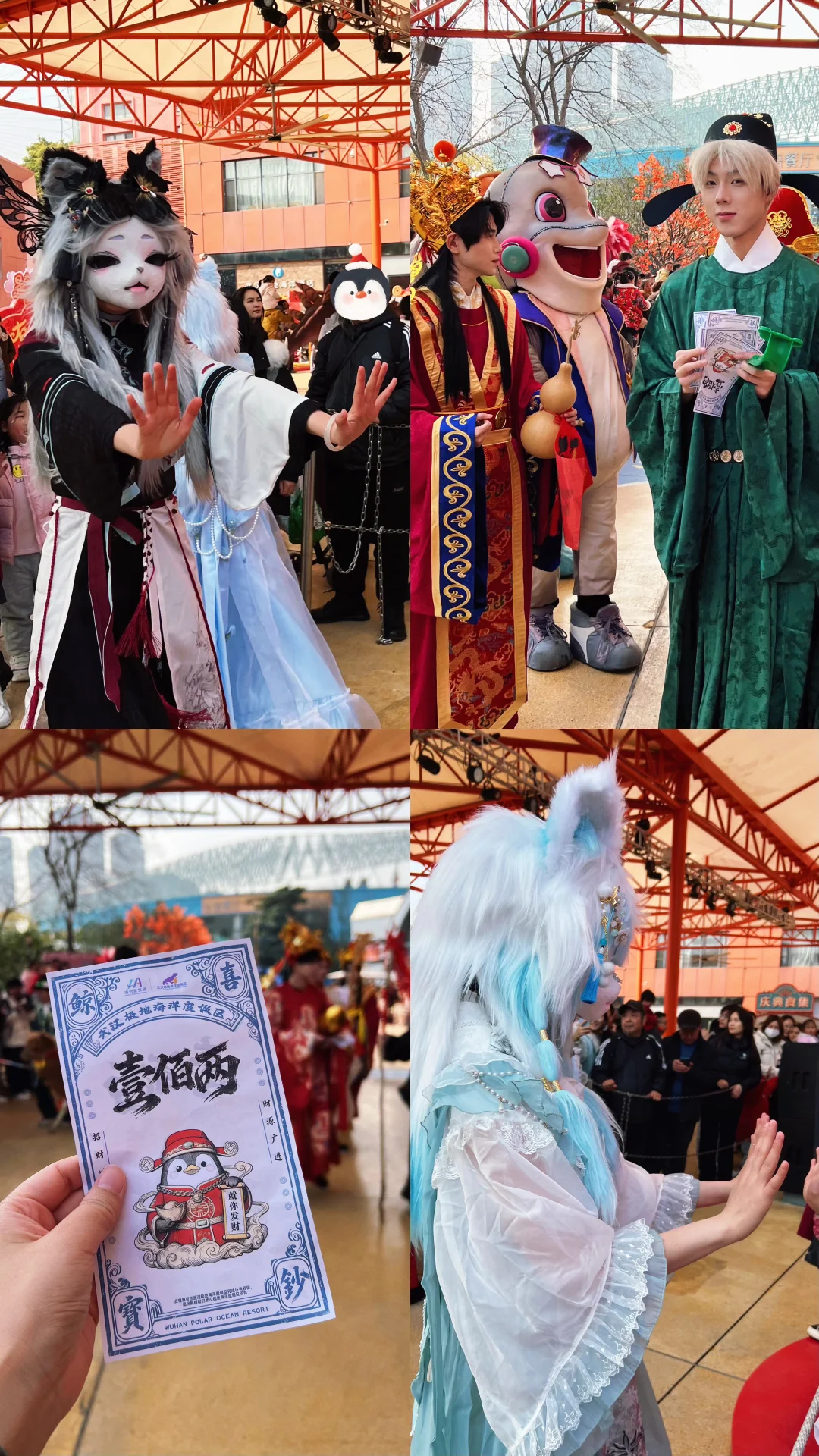 ▫️国潮狂欢大巡游:近距离与五福NPC、萌宠人偶撒福互动