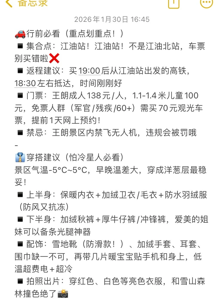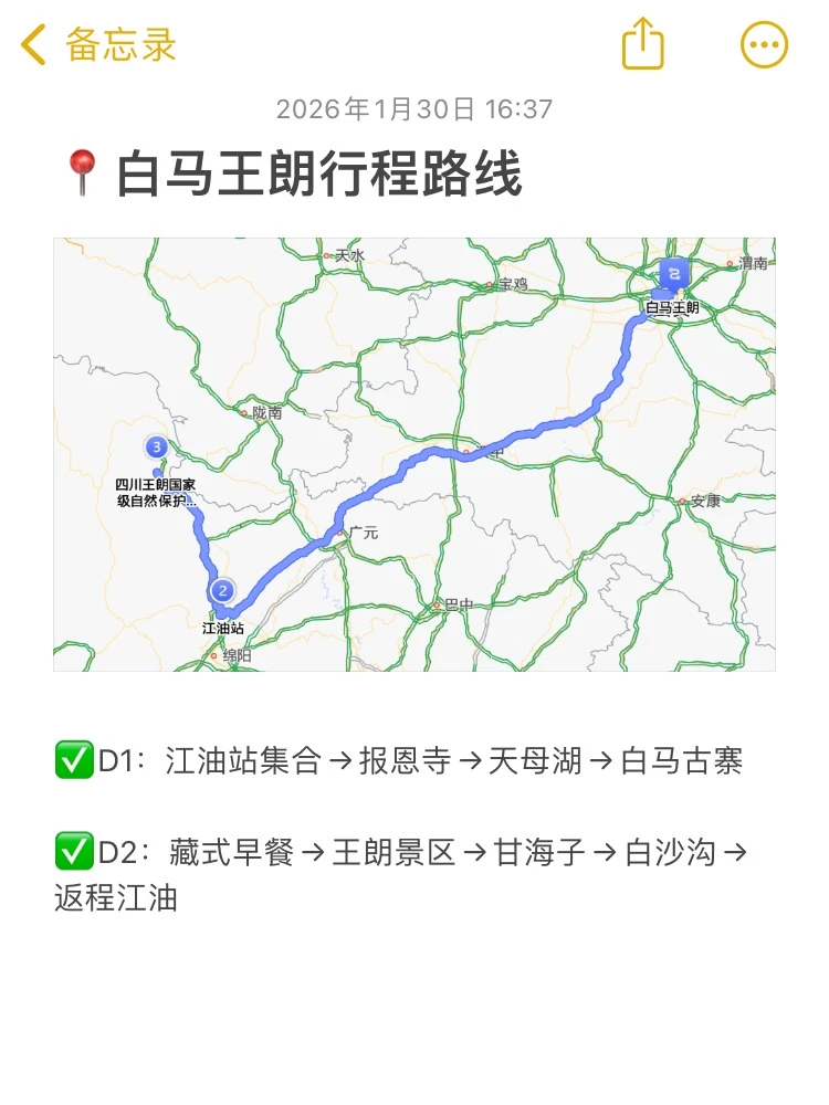 ▫️D2:白马古寨→王朗景区→甘海子→白沙沟 5km 轻徒步→江油站→西安北(G2852/G3764)藏式早餐后冲景区,白沙沟徒步 3h,返程可买平武核桃 / 腊肉伴手礼