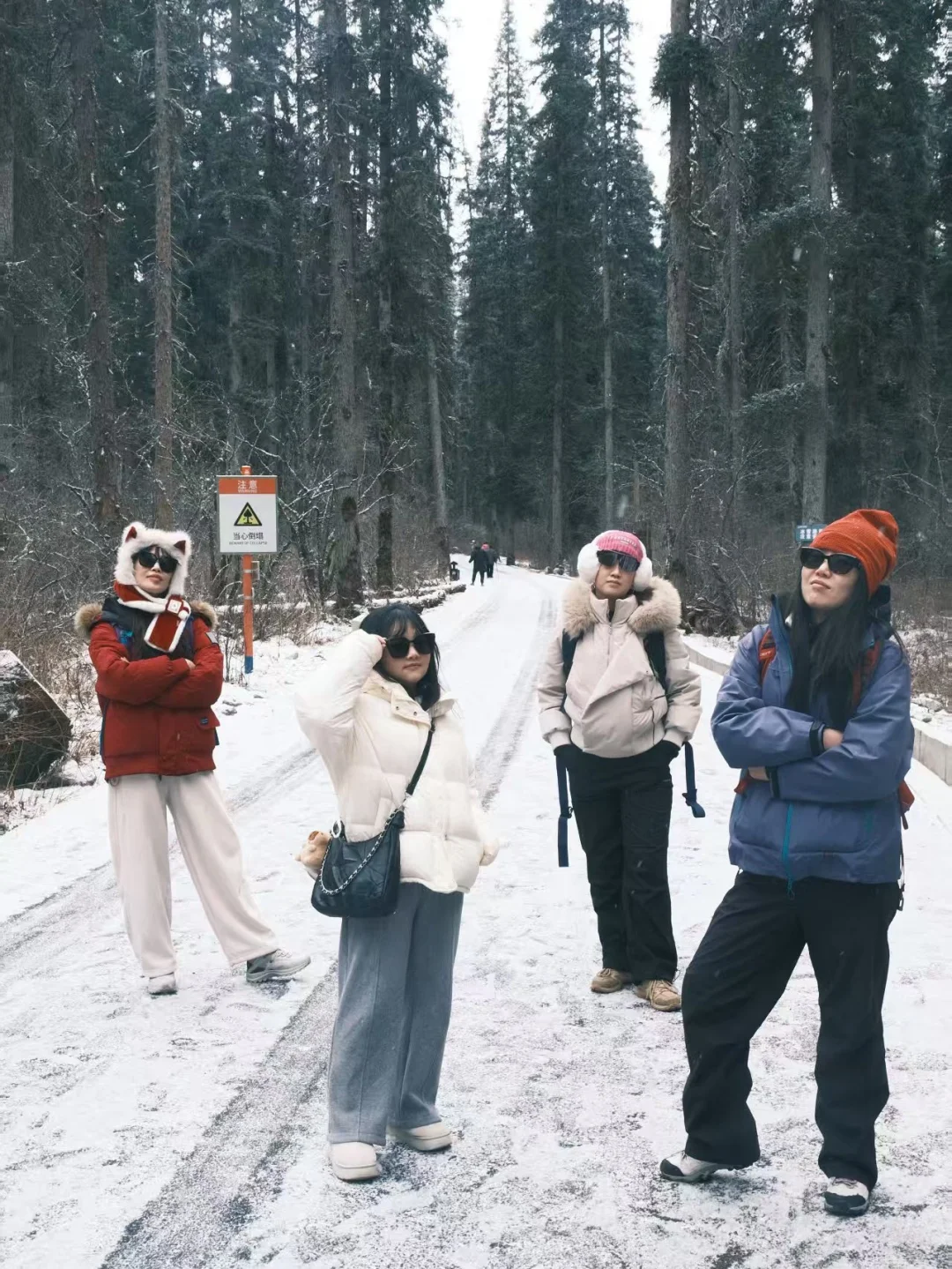▫️鞋子:防滑登山鞋 / 雪地靴,积雪路段不打滑▫️出片色:黑白蓝红绿,和雪景超配