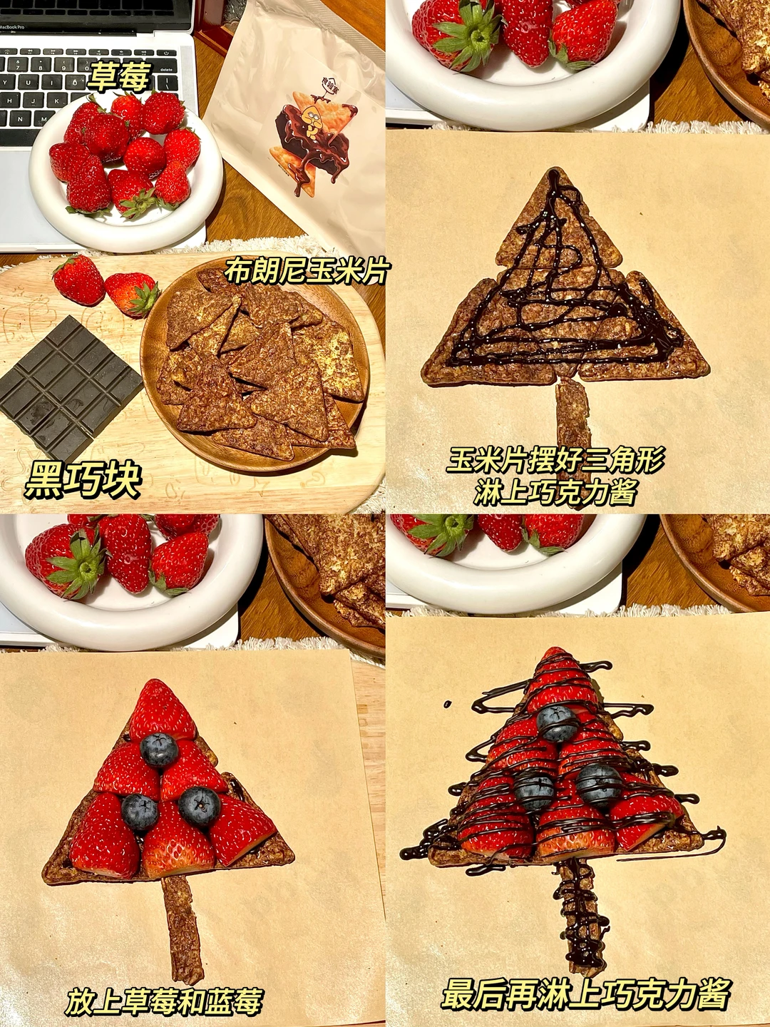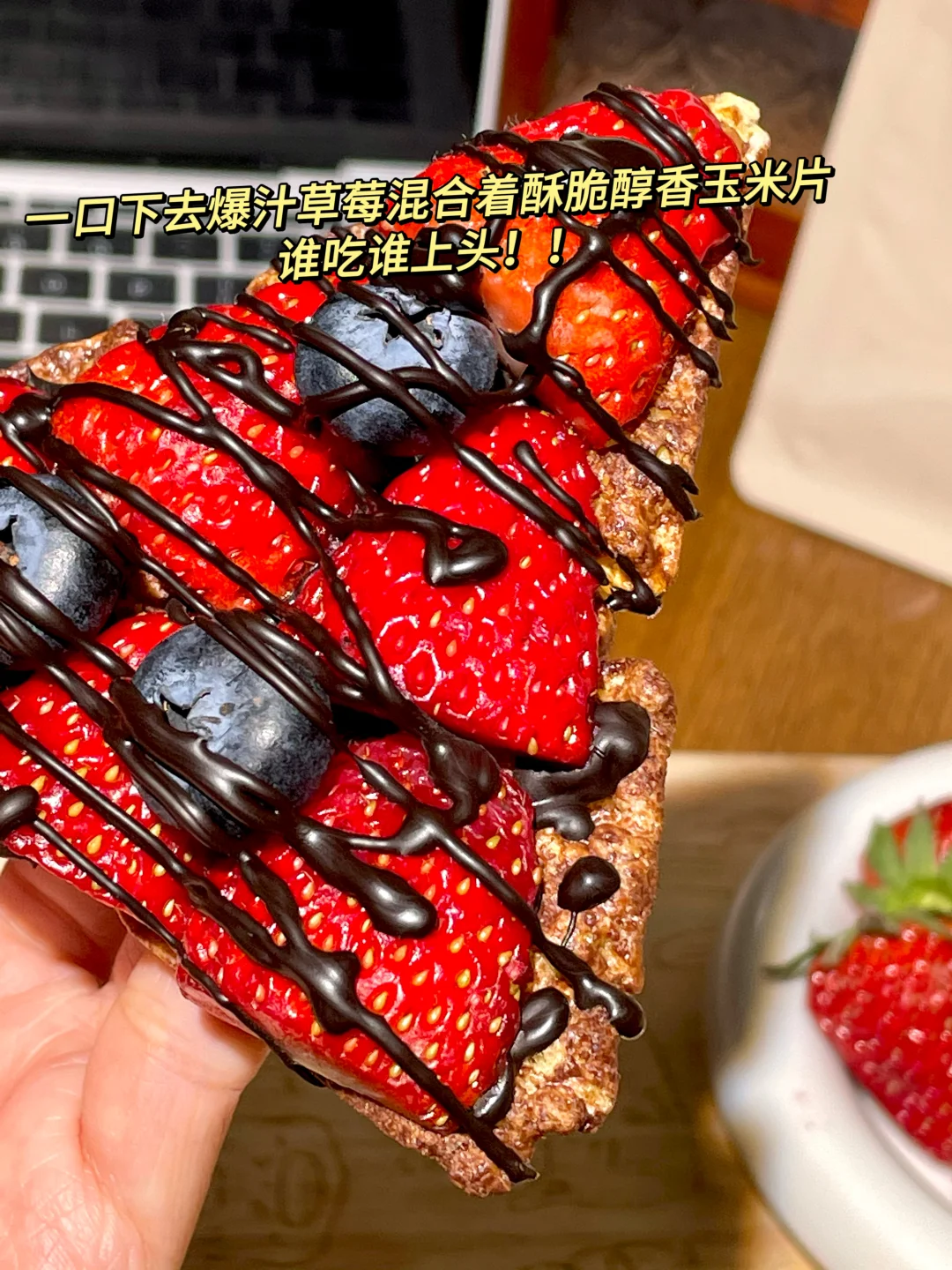 玉米片+巧克力酱+草莓+蓝莓