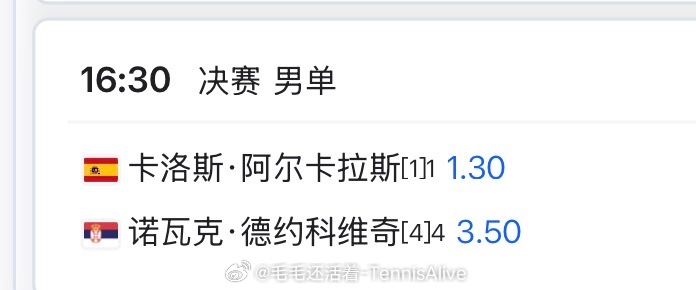 16:30阿尔卡拉斯vs德约科维奇