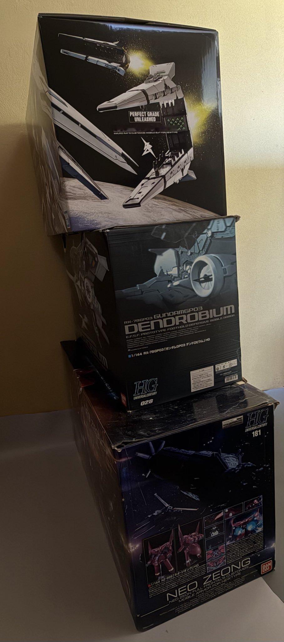 PGU牛高达和HGUC GP-03D、新吉恩号的盒子大小对比高达模型