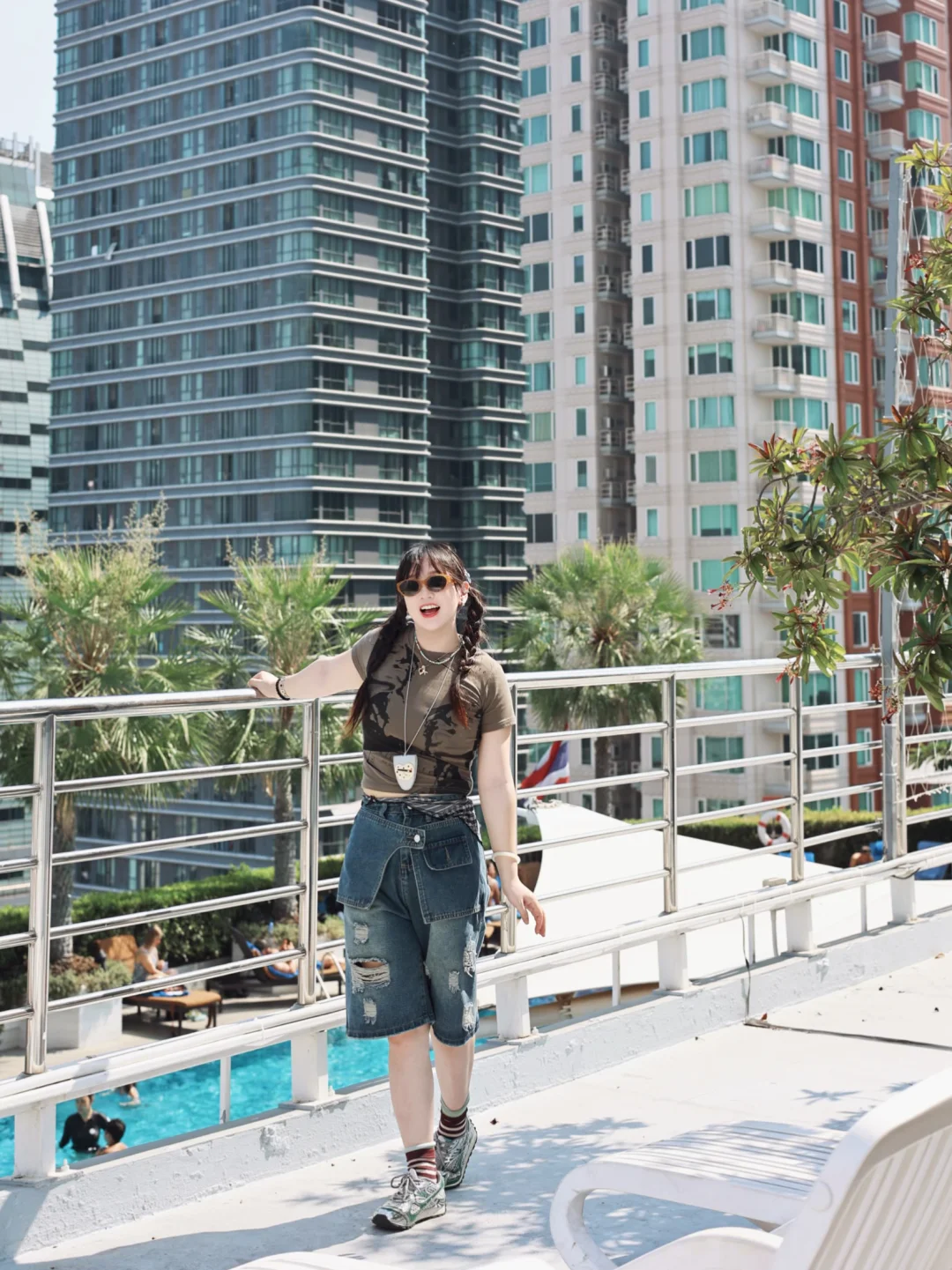 白天在泳池边躺椅晒太阳,蓝白配色+城市背景,随便拍都是度假大片📸 泳池吧有冰镇椰子和小食,傍晚来杯鸡尾酒,吹着风看夕阳,惬意到不想动~ 旁边还有24小时健身房,运动完去SPA做个泰式按摩,疲劳瞬间清零!