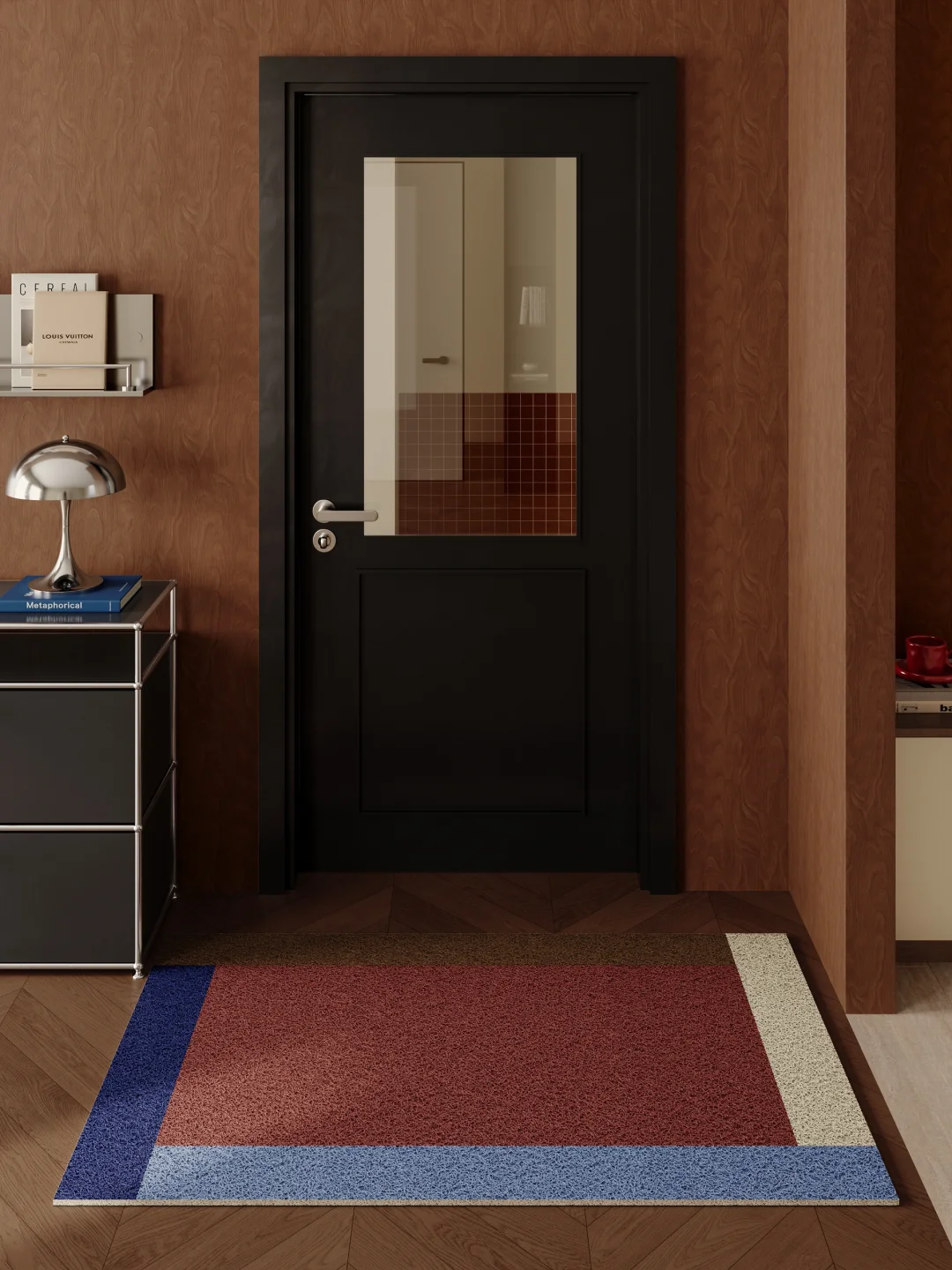 利落几何型格 × 复古撞色拼接 打造小众前卫的入户格调 简约色块拼贴 别具高级时髦感 细腻丝圈纹理 瞩目视觉焦点 红蓝棕撞色🟥质感出彩 空间复古潮范一整个拉满 包豪斯审美🔹利落有型 为玄关入户区注入摩登感 耐磨丝圈还藏污,颜值实用双在线✨