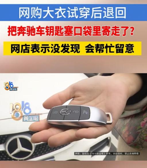 嘉兴,女子买了一件大衣,150多元,不合身想退货,结果把奔驰车的钥匙放进去了,但商家却说没有看到过,退回来后直接打包又发出去了。可女子收到货的重量是1.21千克,寄出的时候是1.69千克,她认定,钥匙就是寄到商家那里去了,并且配一把钥匙要花6000多,她希望店家能够配合找回来。 嘉兴有位沈女士,前段时间在网上买了件大衣,花了一百五十多块钱,等收到货后,她在车里拆开包装试穿,发现袖子太短不合身,就决定退货。 当时天气冷,沈女士嫌麻烦没把试穿的大衣脱下来,想着第二天快递员上门取件,这样更省事,却没留意自己把奔驰车钥匙放进了大衣口袋里。 快递员上门当面打包,沈女士没检查口袋就把大衣寄回了商家,直到几天后要用车时,她才发现其中一把奔驰钥匙不见了,调取小区监控后才想起,钥匙大概率是跟着退货的大衣一起寄走了。 沈女士的奔驰车配有两把钥匙,这把丢失的钥匙还贴了装饰物,去4S店配一把要六千多块钱,这让她十分着急。 沈女士第一时间联系了售卖大衣的商家,说明情况后希望对方帮忙查找,可商家工作人员回应,没在大衣里看到车钥匙。 还表示仓库每天要处理上百件退件,整理衣物的多是临时员工,可能会漏查口袋,之前也遇到过顾客把纸巾、口罩落在衣服里的情况,但要是看到钥匙肯定会归还。 商家还称,沈女士的大衣退回来后,工作人员整理好就直接重新寄出去了,仓库没有安装监控,也没有开箱和入库的视频,没法提供相关证据。 沈女士查询快递重量记录后,更加认定钥匙是寄到了商家那里,她表示自己收到大衣时,包裹重量比寄回去时轻了不少,增重的部分应该就是钥匙的重量。 她曾要求商家把那件大衣找出来拍照给她看,却遭到了拒绝,商家也无法拿出证据证明自己没有收到钥匙。 无奈之下,沈女士还联系了快递公司和网购平台,快递公司核查后确认包裹运输过程中重量没有异常,排除了物流环节丢失的可能。 平台表示会积极协调双方,尽力保障双方权益,警方则认为这属于民事纠纷,没有立案,建议通过法律途径解决。 截至目前,这把奔驰钥匙依旧没有找到,沈女士既承认自己粗心大意,也希望商家能更积极地配合查找,避免自己花大价钱配钥匙。 这件事也提醒大家,退货前一定要仔细检查衣物口袋,避免遗漏贵重物品。