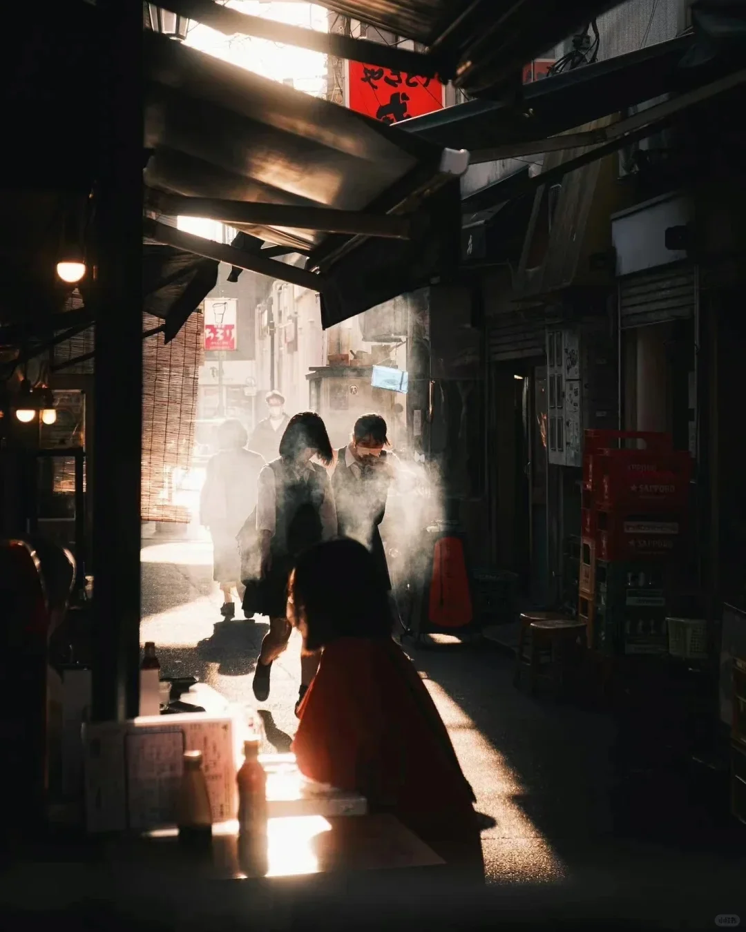 Hosaka对光线的运用十分娴熟,他善于利用对比强烈的光影效果,打造出充满孤独感和深邃情感的东京街头影像。无论是夕阳下的长影,还是昏黄街灯下的寂静小巷,Hosaka总能通过光影呈现出独特的视觉效果,使观众产生共鸣。💡🌒