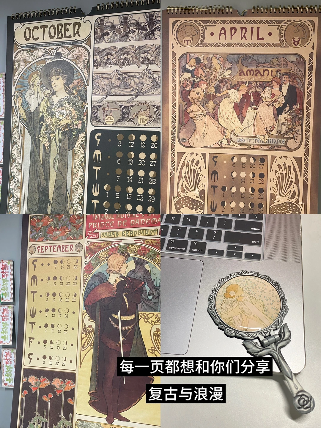 ·读研之后真的想日子过的再快一点😡想毕业想上班想干好多事🍀好在快2025年了日历都安排上了,感觉日子更有盼头了,穆夏的月相历好浪漫呀,每天都可以看到月相🌕12幅超级精美的复古插画,每个月都有好心情与期待