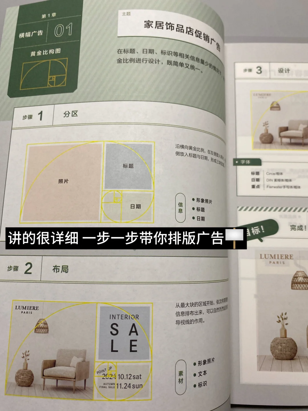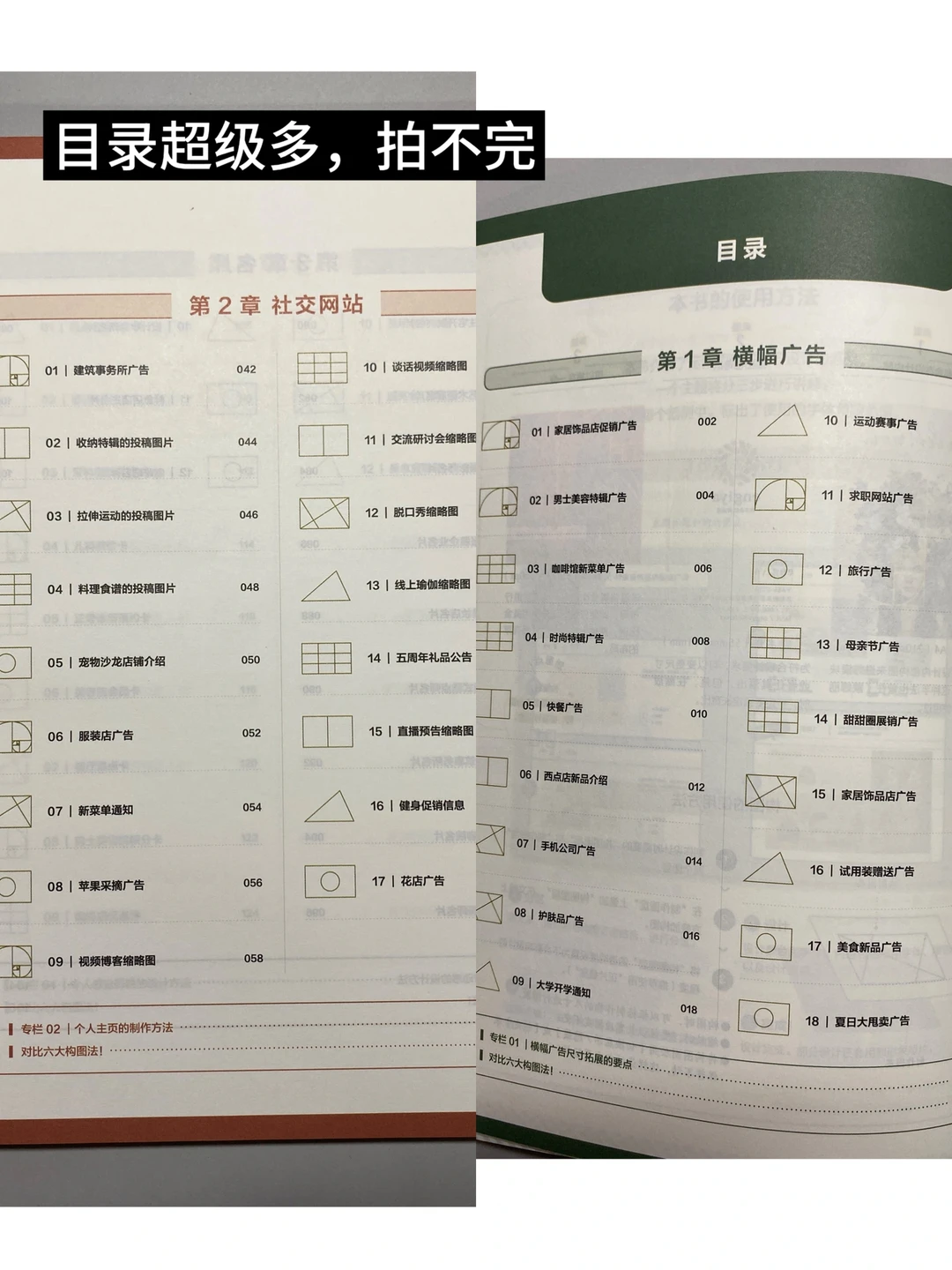 ·今天是书籍分享日~《黄金构图》 ·一本极其实用的平面排版构图指南书籍,书中有丰富的案例,都是手把手教,从广告到名片,再到社交网站的页面设计,这本书都详尽地传授了黄金比例的应用法则。对于平面设计师或者学视觉传达的同学而言,这无疑是一本极具价值、益处多多的宝典。