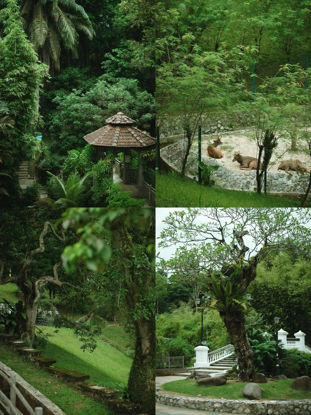 园里现在还能看到维多利亚式凉亭的痕迹。明明坐落在市中心,一进园却只剩鸟叫虫鸣,茂密树冠把热浪全挡在外面,800 多种兰花爬满凉亭,周末有花农摆摊卖花苗,山坡下的鹿园能喂梅花鹿,鼠鹿超小只像精灵,记得带点胡萝卜条,它们会主动凑过来蹭手。往公园深处走,有片人少的蕨类植物区,阳光穿过叶片的光斑美到窒息。