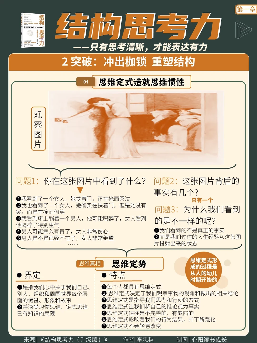 搞笑作者扶持计划 大到宇宙星系,小到颗粒尘埃,无论是高楼大厦、动物与植物、机器与网络、思想与观念、人与社会,任何事物都有其特定的结构,都是通过其特定的结构来体现其存在的价值和意义的。我们很难想象没有结构的世界会是什么样的在物质世界,人们通过结构来认识物质。结构构成了世界,人们不断地通过对事物结构的认识来加深对事物的了解和体验。例如,发现原子的过程,从最开始的“原子不可再分”观念到蛋糕式无核模型、行星式有核模型、量子化原子结构模型,再到中子假说等;原子的质量集中在原子核上,但是原子核的体积仅占原子体积的几千亿分之一;原子内部有一个很大的空间,若将原子比作一个庞大的体育场,那原子核只相当于一只蚂蚁;核外电子只能在限定的轨道内绕核运转,按照能量高低而距离核远近不同。人们通过对原子内部结构的不断认知,终于发现原来这么小的原子跟宇宙的美也是统一的。如果深入人们的心理、行为,就会发现结构也无处不在:由欲望产生需求,由需求产生动机,由动机产生行为等,这些形成了心理活动的结构。就人们认识事物而言,由感性认识到理性认识,再由理性认识回到实践中去,人们在此循环往复的过程中形成各自的思维定式。按照学习型组织理论大师彼得·圣吉的理论,要创建学习型组织,就要完善自己的思维定式,而这首先要剖析思维定式的结构。感受:这本书是需要反复的学习的,甚至需要刻意练习的。为什么?这本书就是制作知识卡片的底层逻辑,同时也是在对你的大脑进行一种结构化的训练的过程。在制卡的过程中,我们会不断的去体验到知识卡片带给我们的不是仅仅是一套图解书籍的作品,而是你的思维得到了极大的训练,让你拥有了这种结构化的思维方式即结构思考力。