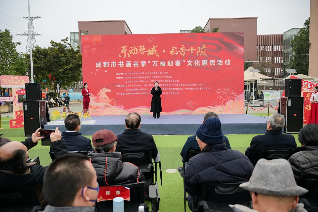 1月31日,成都市龙泉驿区十陵街道综合文化活动中心翰墨飘香,乐动蓉城·书香十陵——成都市书画名家“万福迎春”文化惠民活动在此举行,十余位书画名家现场挥毫送福,让书画艺术走进街道社区等基层文化阵地。