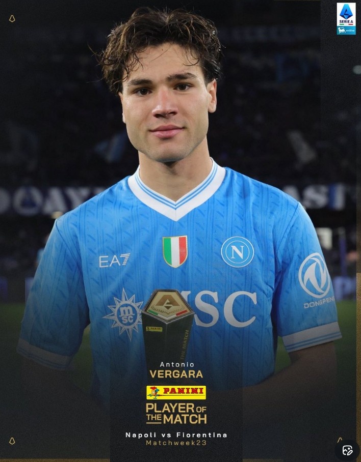 传射建功,意甲官方:维尔加拉当选那不勒斯2-1佛罗伦萨全场最佳