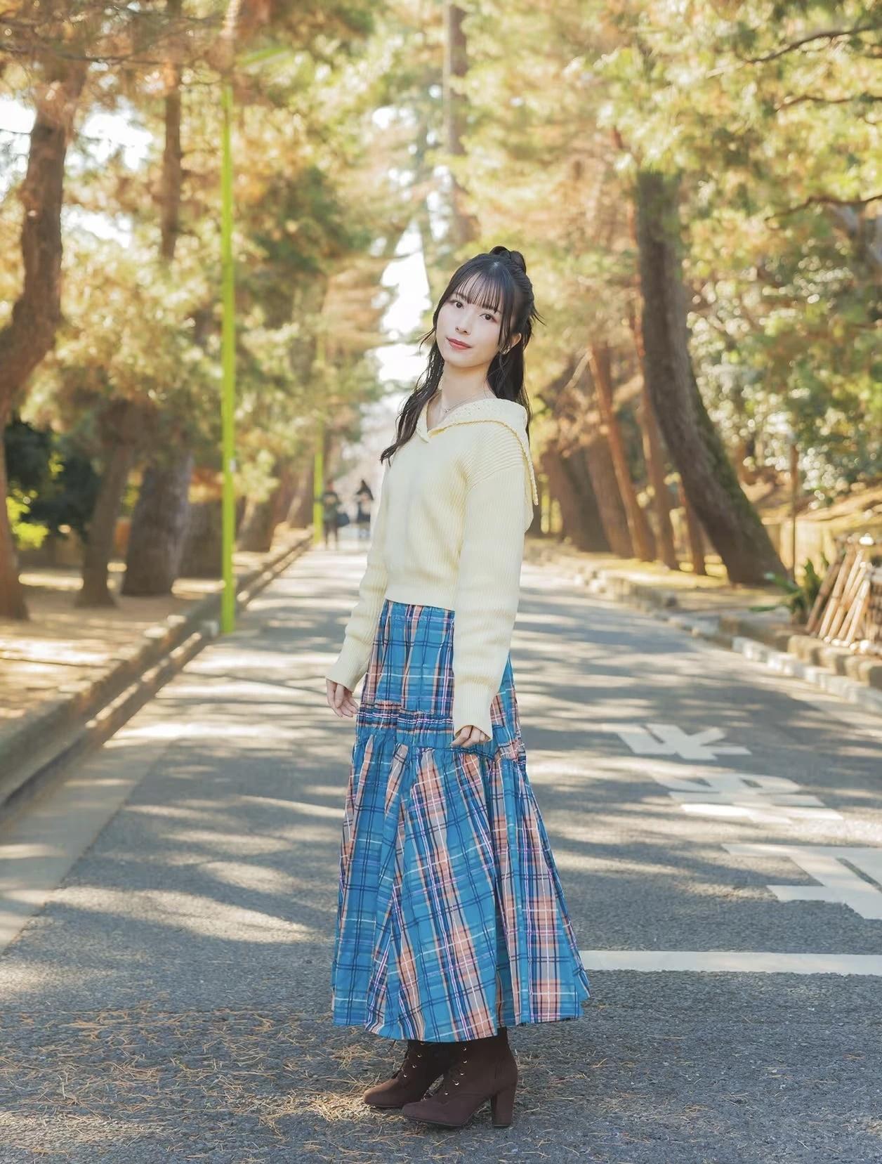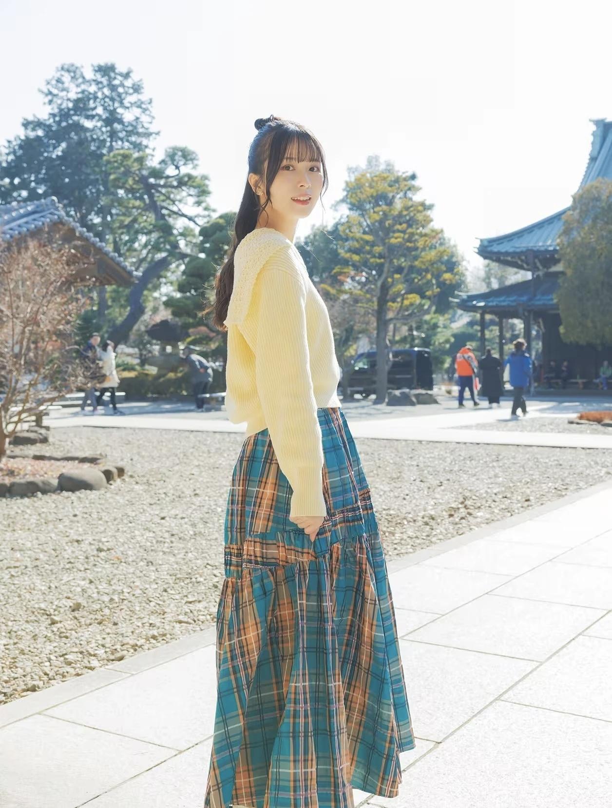 户外写真系列/阳光下的虔诚的甜美少女,穿着黄色毛衣和格子裙,微笑着合十祈祷。祈求2026年心想事成,万事如意!一帆风顺,财源滚滚公园微笑写真 鲜花捧颜写真 纯白微笑写真 街头微笑写真 鲜花微笑写真 温柔靠墙写真 秋日祈福写真