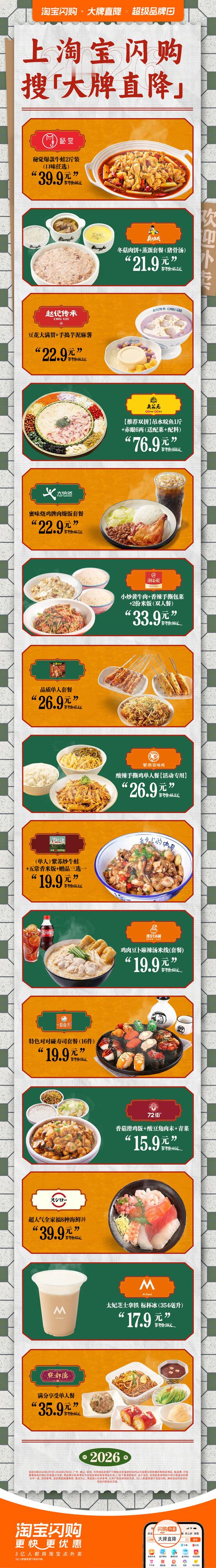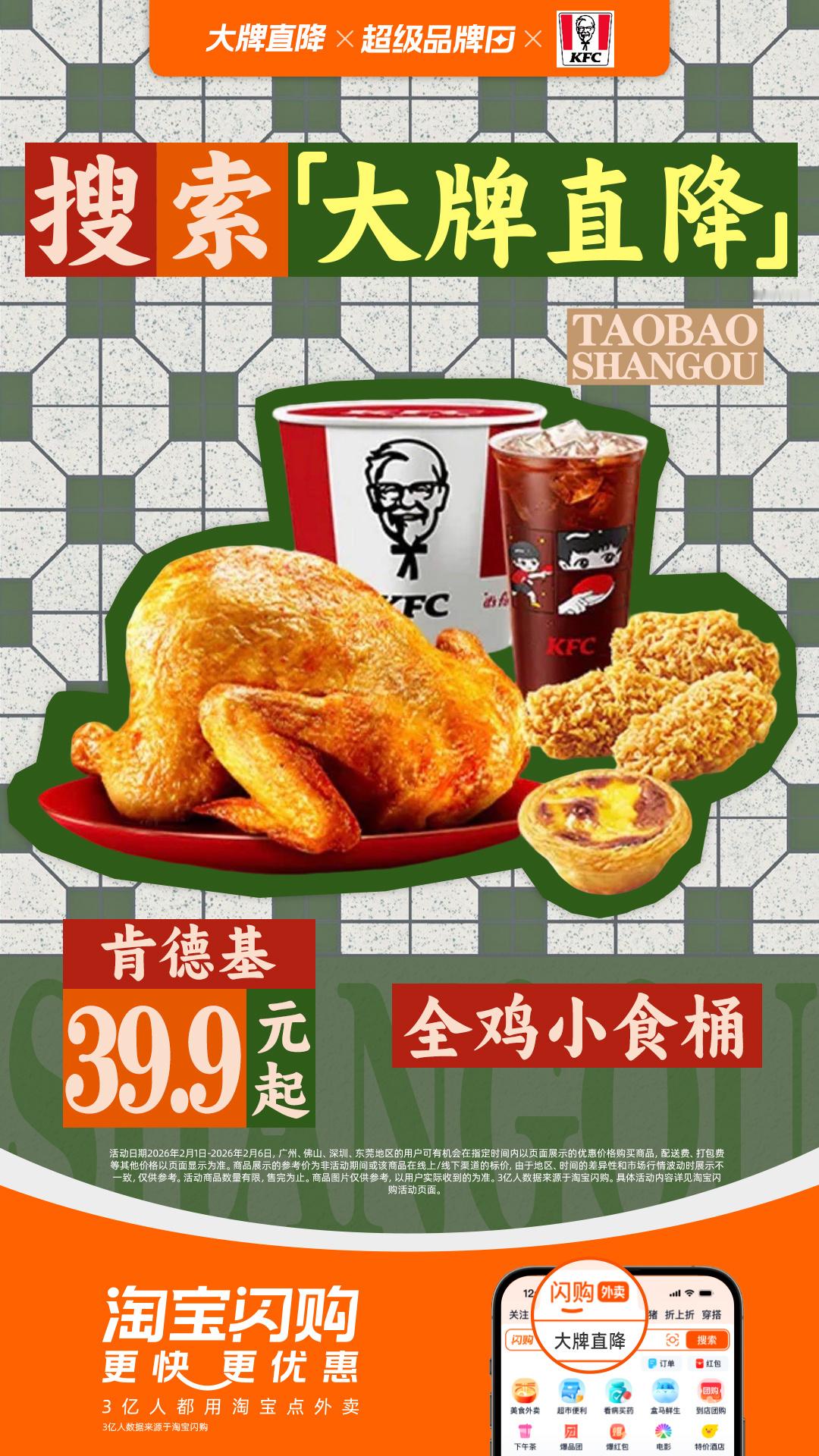 淘宝闪购19块9大牌随心pick早晨值得一顿扎实的犒劳!淘宝闪购大牌直降肯德基全鸡小食桶39.9元起,酥香够味;京卷辣堡乐享双人餐44.9元起就有整整8件套,份量十足。一人食推荐嫩牛堡一人大满足套餐才28.9元起。想来点热辣的中式口味?湘当爱小炒黄牛肉双人餐33.9元起,牛肉香辣超下饭!2月1日-2月6日,淘宝闪购搜索【大牌直降】,本地美食19.9元起。