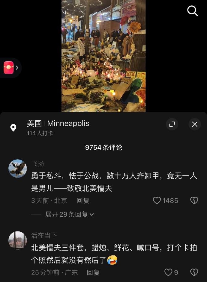 北美懦夫三件套,蜡烛、鲜花、喊口号, 打个卡,拍个照,零元购里走一遭。 转个发,骂声高,护照戴头出门笑, 摆姿态,卖哀嚎,下跪完了再拥抱, 嘴炮响,蜡烛烧,虚情假意装崇高, 光作秀,无实招,闹剧收场风一吹就飘。 丈夫为国抢石油, 妻子在家被爆头。 孩子送去上了岛, 北美懦夫喊自由! 四亿支枪都白搭,一个英雄路易吉。 以为身在美利坚,仔细一看是三哥。