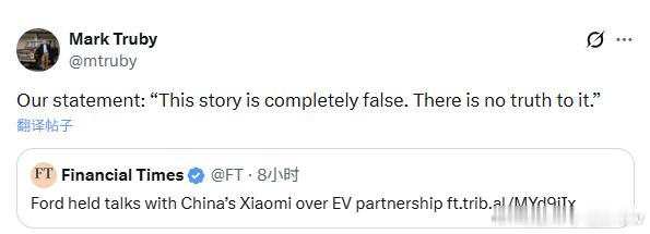 要注意福特对外口径的措辞,“这个故事是完全错的,里面没有任何事实。”