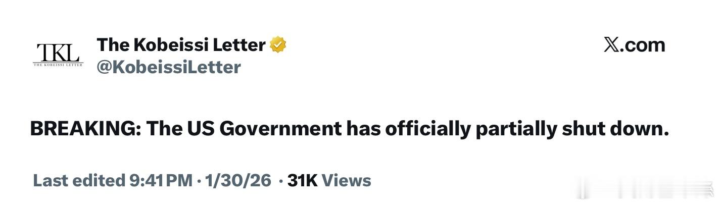 美國聯邦政府已正式進入「部分停擺」狀態,美國行政管理和預算辦公室確認,聯邦政府將於午夜開始停擺。
