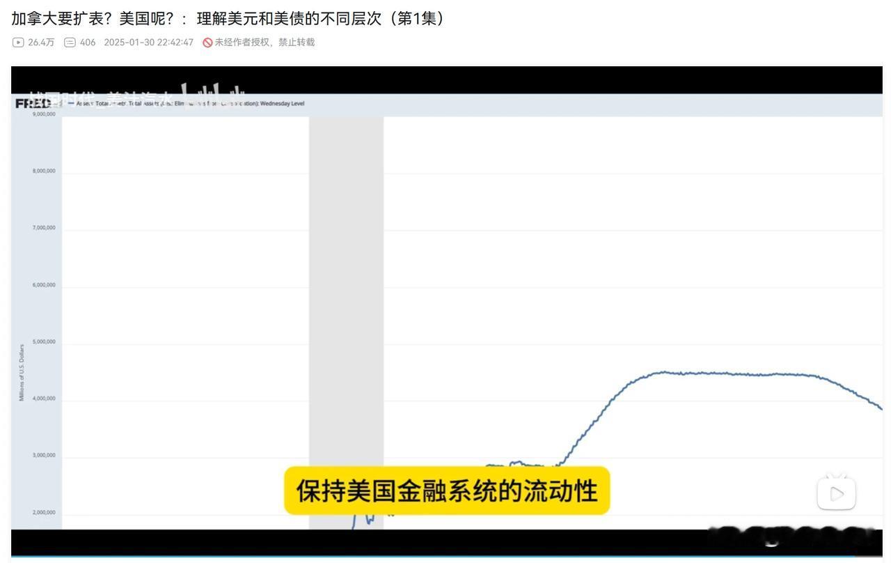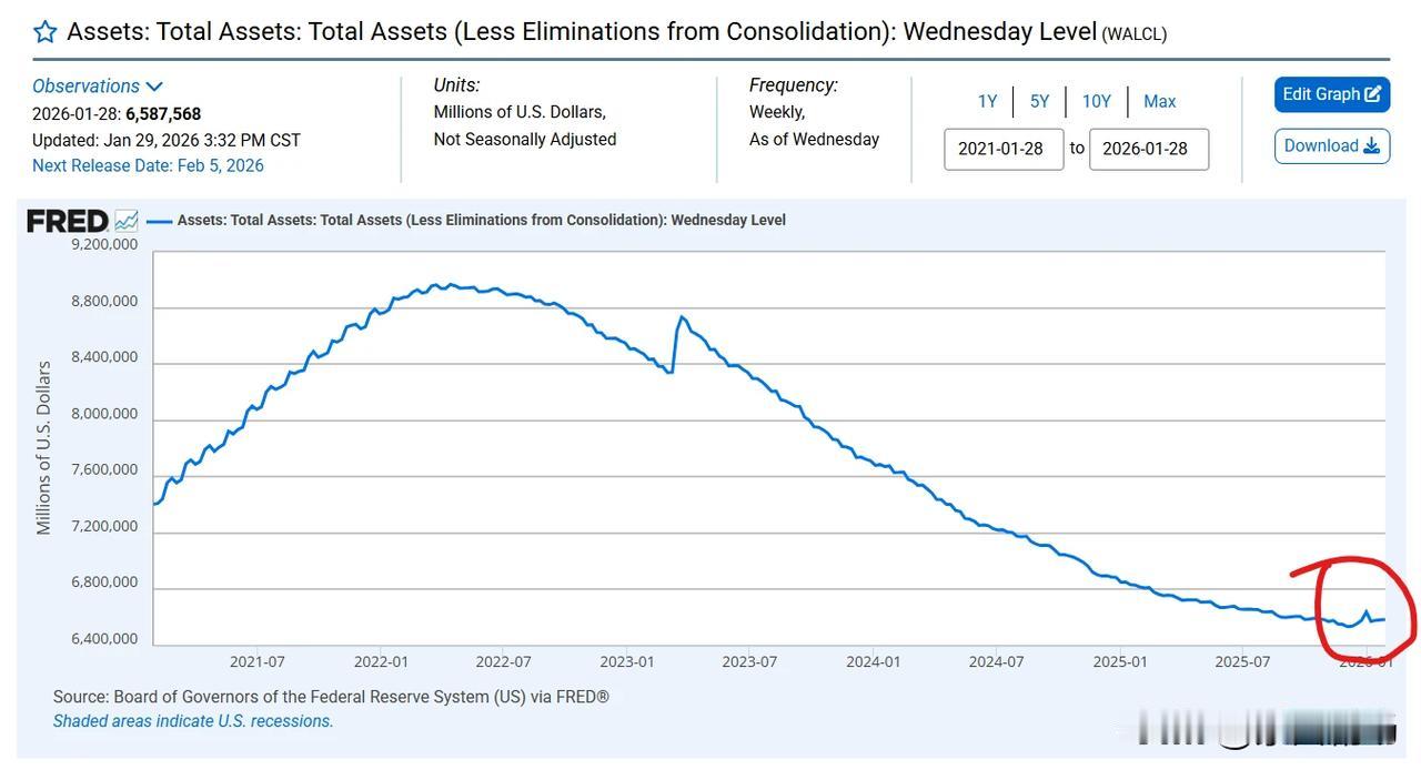 有的朋友认为,如果沃什上台,会缩表。 缩表是不可能缩表的,缩不了一点。如果你去看美联储资产负债表的资产端(图六),就可以发现,如果缩表,只能从银行准备金和TGA账户抽水。隔夜逆回购已经抽干了。 如果从银行准备金抽水,那么就相当于从基础货币抽水,美国会立刻陷入流动性危机。如果美国陷入流动性危机,美联储反而还要扩表救市。如果从TGA账户抽水,那么川普所有花钱的政策,都执行不了。 未来的美国,只有两种选择。选择一:波动式扩表。选择二:一次性大幅度扩表。不存在缩表这个选项。 即便是波动式扩表,在中期选举可能也会面临风险。 我们在2024年第和2025年初,做出过预测,未来美国会连续不断地小规模扩表。维持短债的流动性。图七:已经出现这种趋势。 美联储 美联储换帅 美联储独立之争 查账美联储 美联储减息 美联储量化宽松 美联储退群