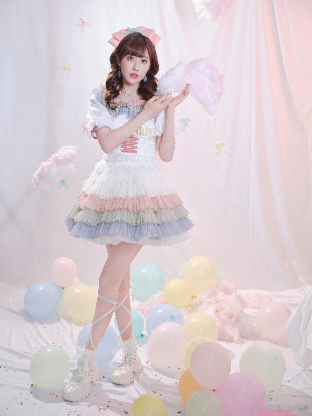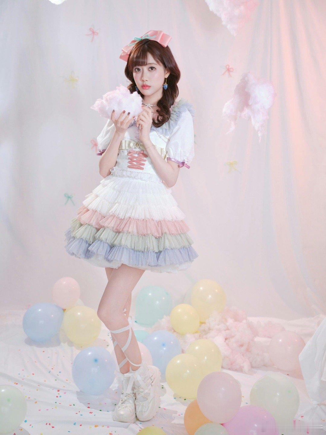 李艺彤香香软软小蛋糕具象化了 彩色蓬蓬裙配卷发,像从童话里走出来的甜心精灵!空气