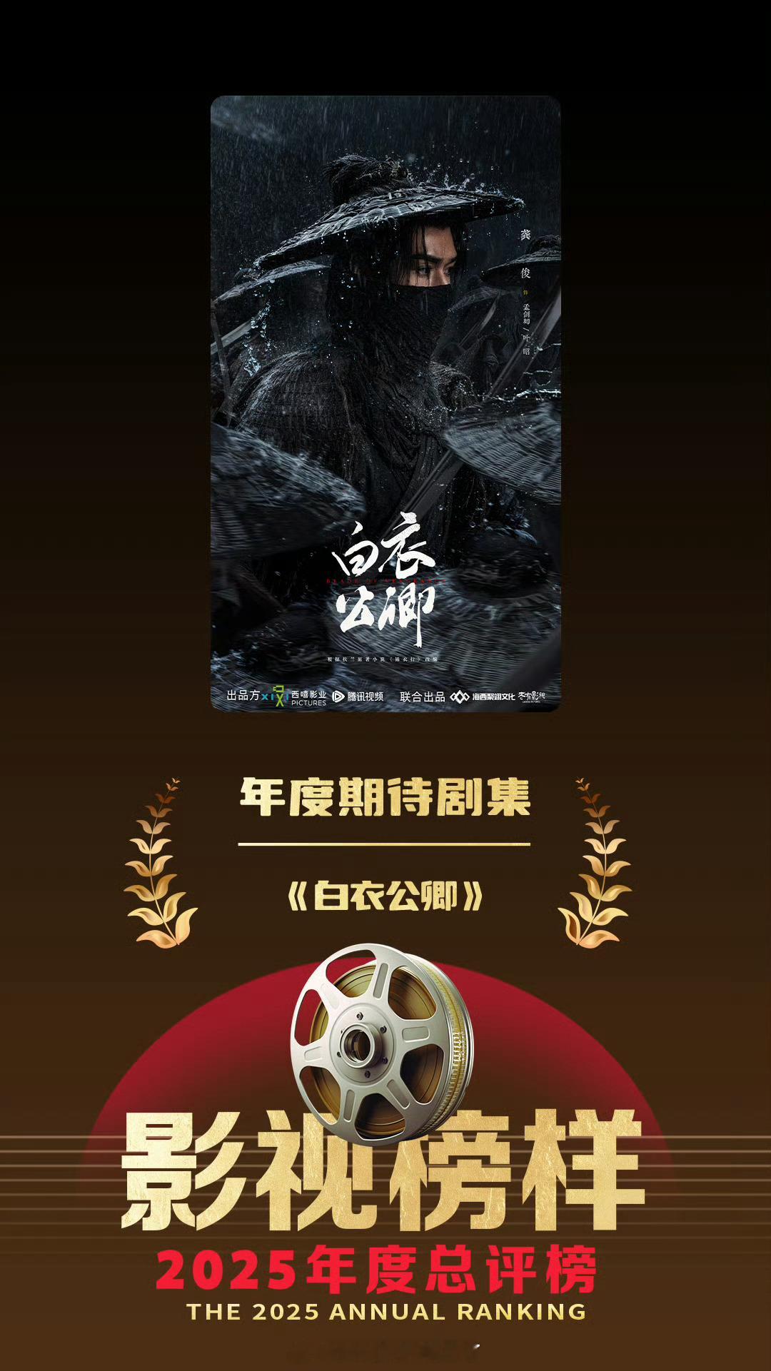 龚俊《白衣公卿》刚杀青没多久就上了五个年度期待剧集榜!看来高品质剧集大家都很期待啊!新京报2026年度期待剧集影视榜样2025年度总评榜年度期待剧集博客天下2026年度期待剧集腾讯视频2025星光大赏最受期待剧集新周刊2025年度视频榜年度期待白衣公卿