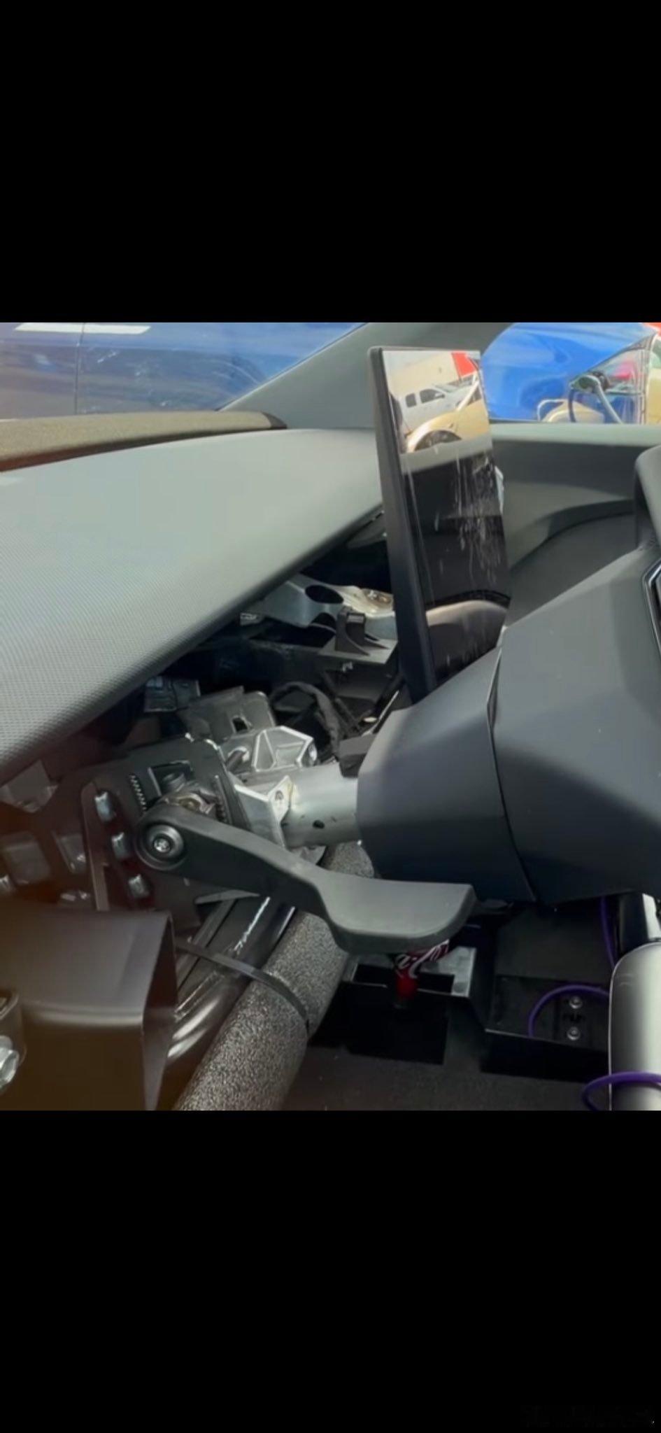 Cybercab的临时转向结构,看着像是Cybertruck同款,不出意外是线控