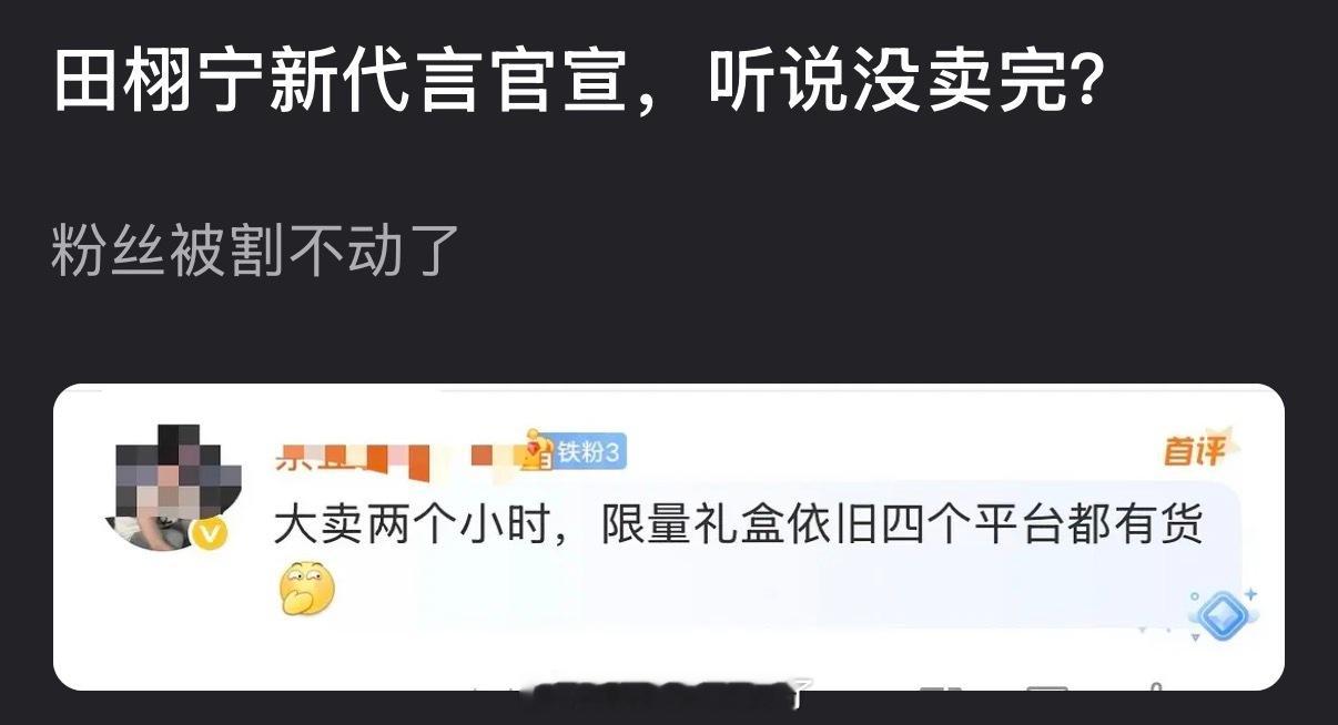 田栩宁新代言官宣居然没卖完,粉丝这是割不动了?
