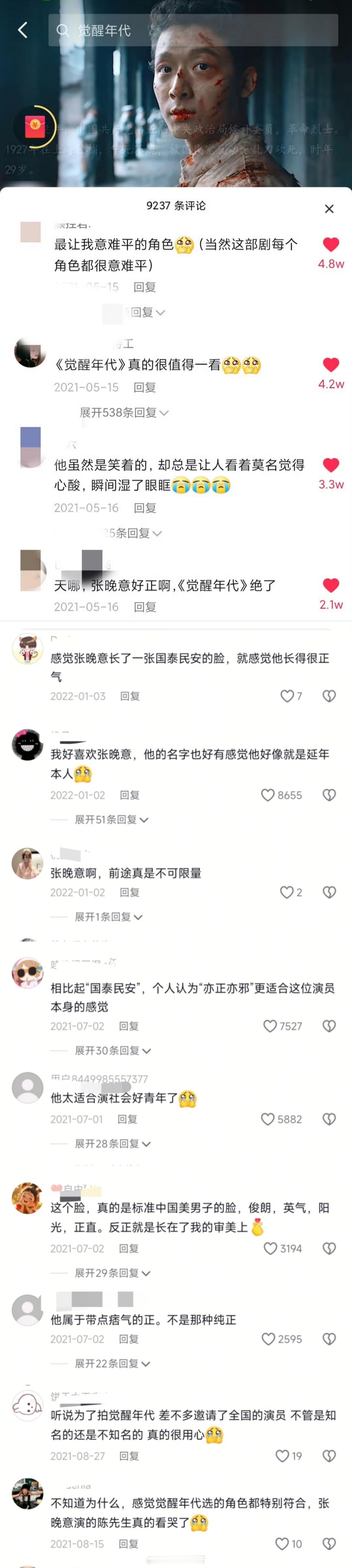 当年所有的官方开播预告和总结都剪辑有张晚意的名场面。播出时追剧的观众、同剧组导演和演员同事都在夸赞晚意。