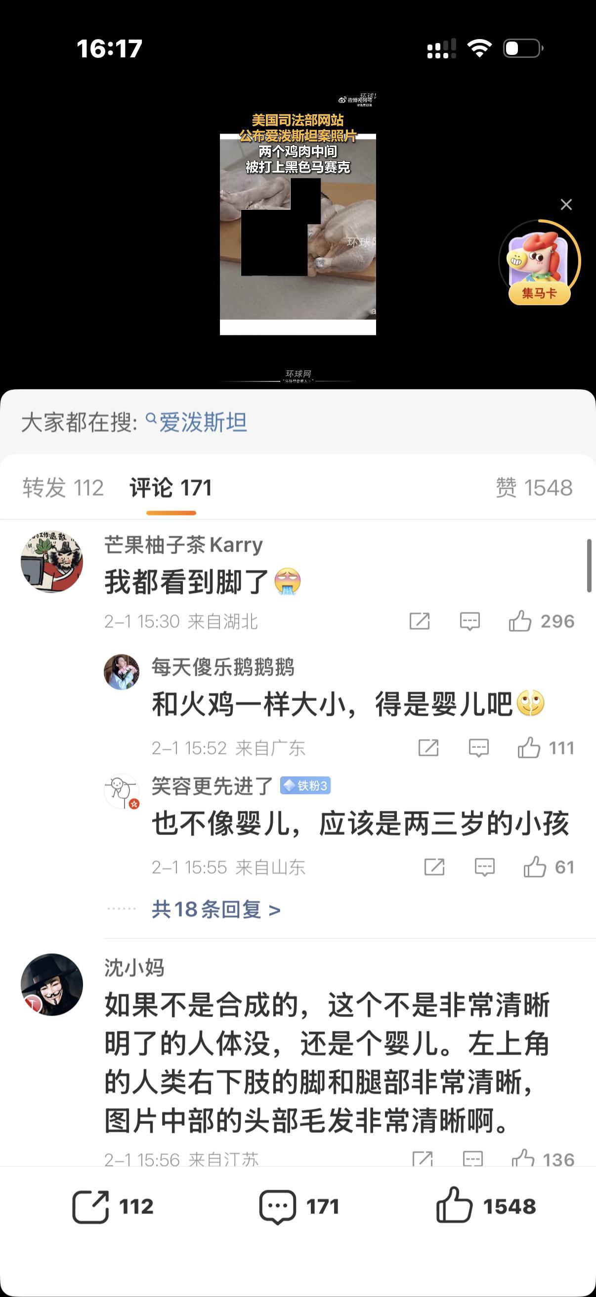 当网友们把照片放大到像素级,“小孩的脚”“两三岁孩童的轮廓”“清晰的毛发”这些细节被一一揪出时,这块刻意涂黑的马赛克瞬间成了欲盖弥彰的铁证。生鸡肉的血腥质感与人体轮廓的模糊阴影交织,像极了爱泼斯坦案的荒诞底色——这个靠性侵未成年少女搭建权贵人脉网的富豪,生前把孩子视作“玩物”,死后连案发现场的证据都要用马赛克掩盖。