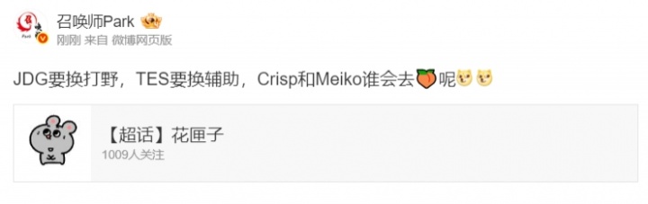 JDG.Tian?TES.Meiko/Crisp?爆料人:JDG要换打野。TES要换辅助