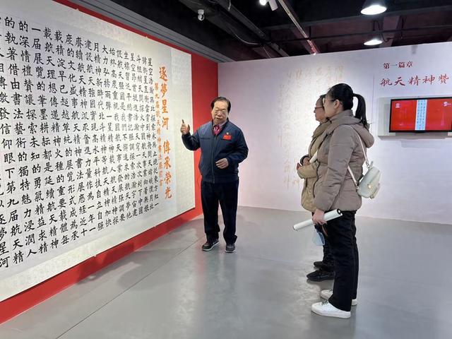 从“东方红一号”划破长空,到“神舟”问天、“嫦娥”揽月、“北斗”组网、“天问”探火,中国航天事业的每一步跨越,都在浩瀚宇宙镌刻下鲜明的中国坐标。本次展览设有“航天精神赞”“航天成就颂”“航天群英谱”“航天翰墨情”四大核心板块,内容既有对航天精神的深度诠释,也有歌颂航天事业发展成就,还有展现航天劳模、工匠的励志故事,更有突出航天人对家国的赤诚与对梦想的执着。杨永法介绍,此次展览旨在通过书法,艺术再现中国航天波澜壮阔的征程,深情礼赞航天传统精神、“两弹一星”精神、载人航天精神、探月精神和新时代北斗精神,致敬所有为中国航天事业发展不懈奋斗的航天人。