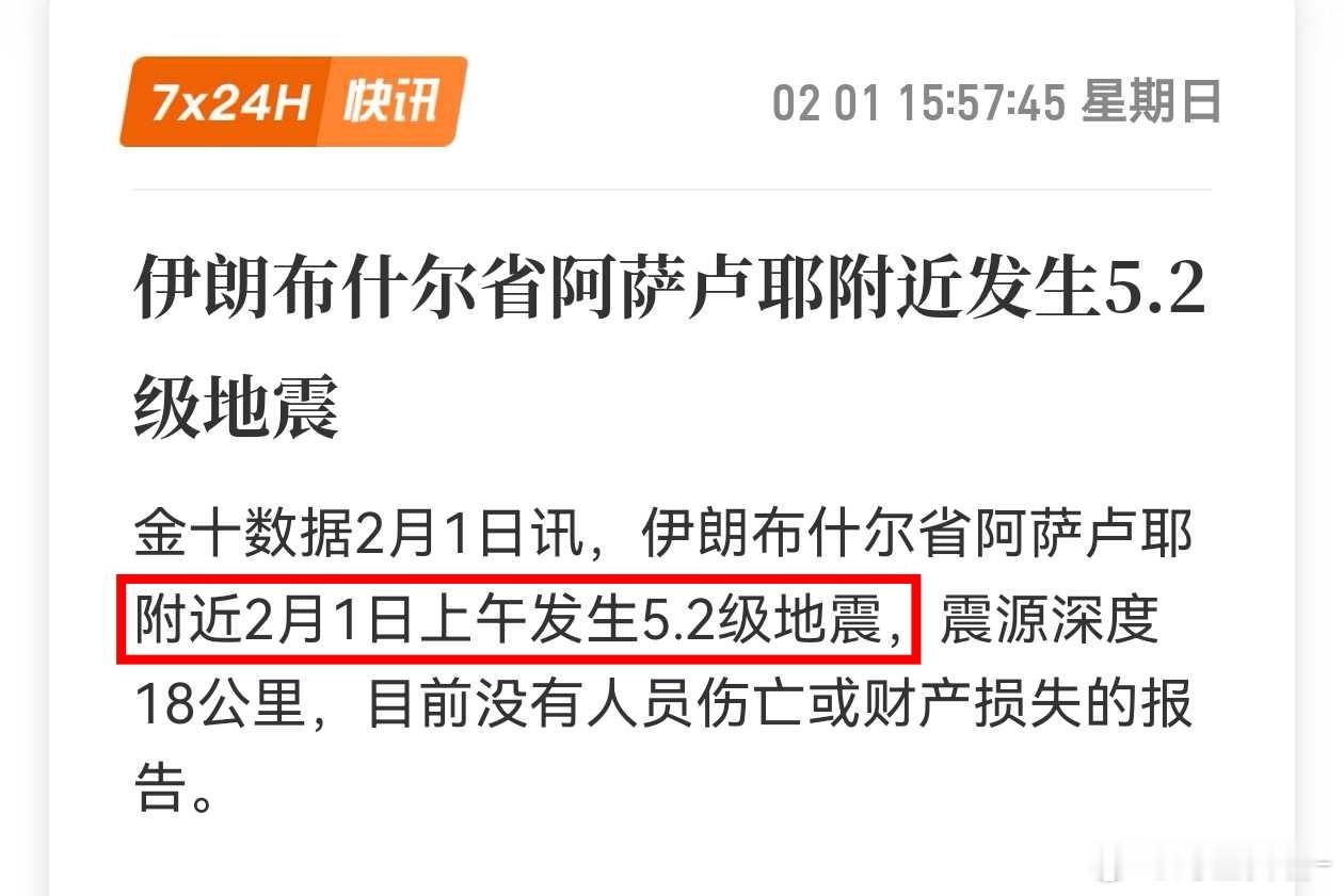 伊朗 5.2 级地震无人员伤亡、财产损失。该不会再进行核试验吧,很难不让人怀疑…