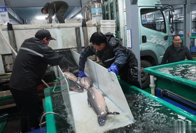 外地大鱼调运到上海。
