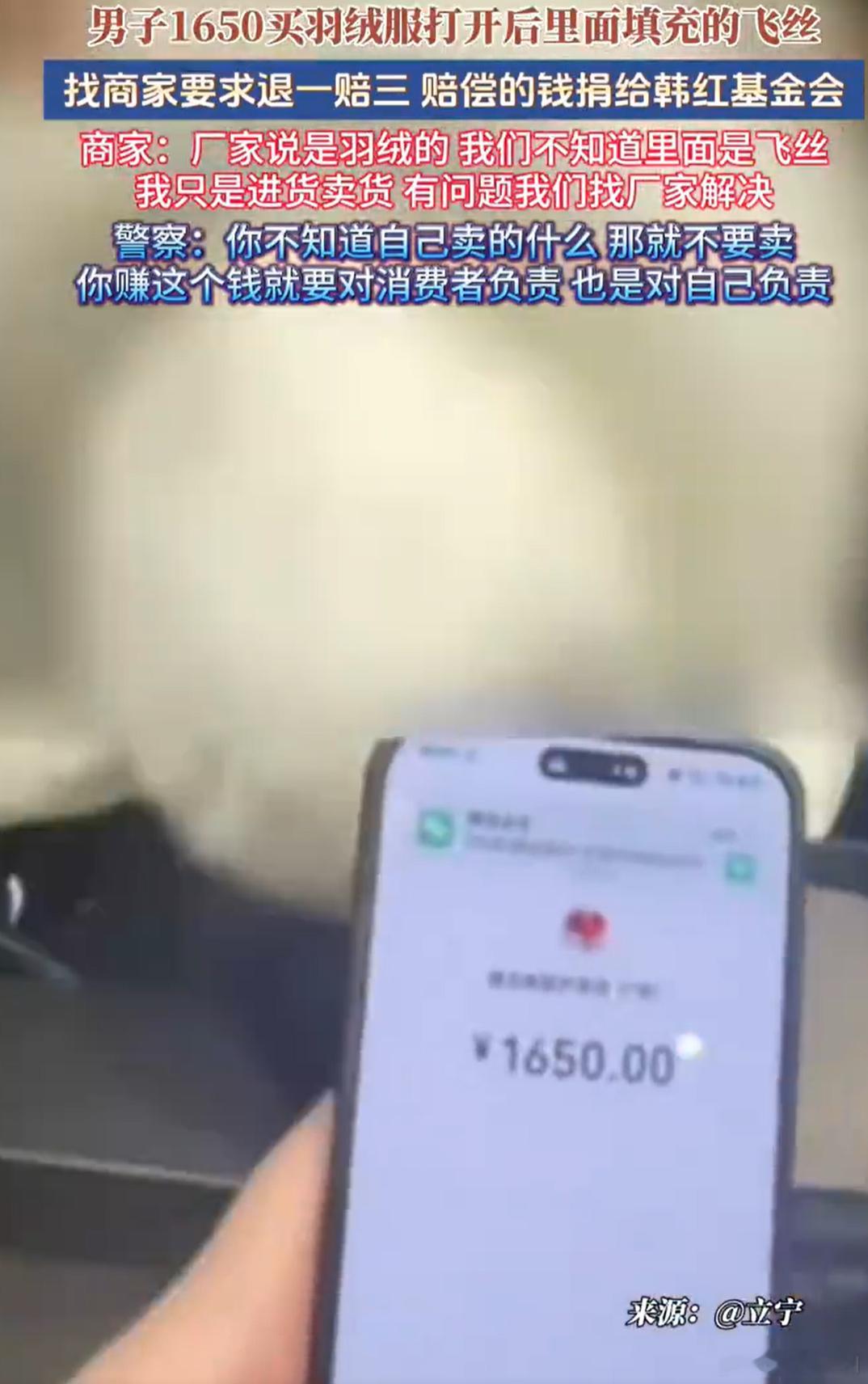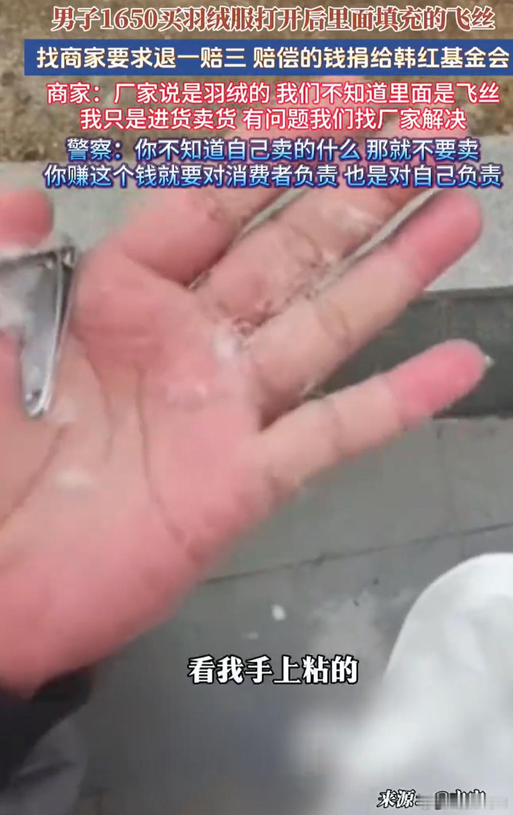 男子1650元买羽绒服全是飞丝报警以后这种社会新闻,已经要记得把品牌曝光,这也太