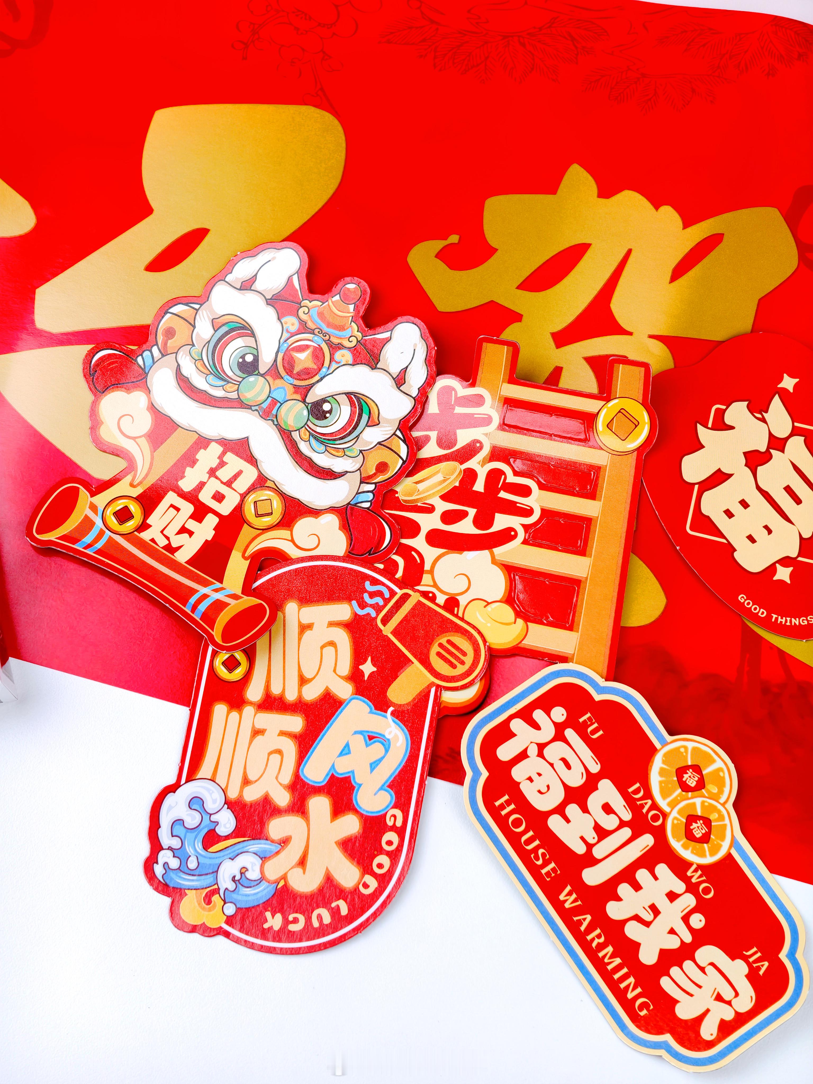 「马到成功」主题很喜庆,礼盒内容也很丰富,有吃的,玩的,有冰箱贴、对联,还有出差会用到的颈托等等